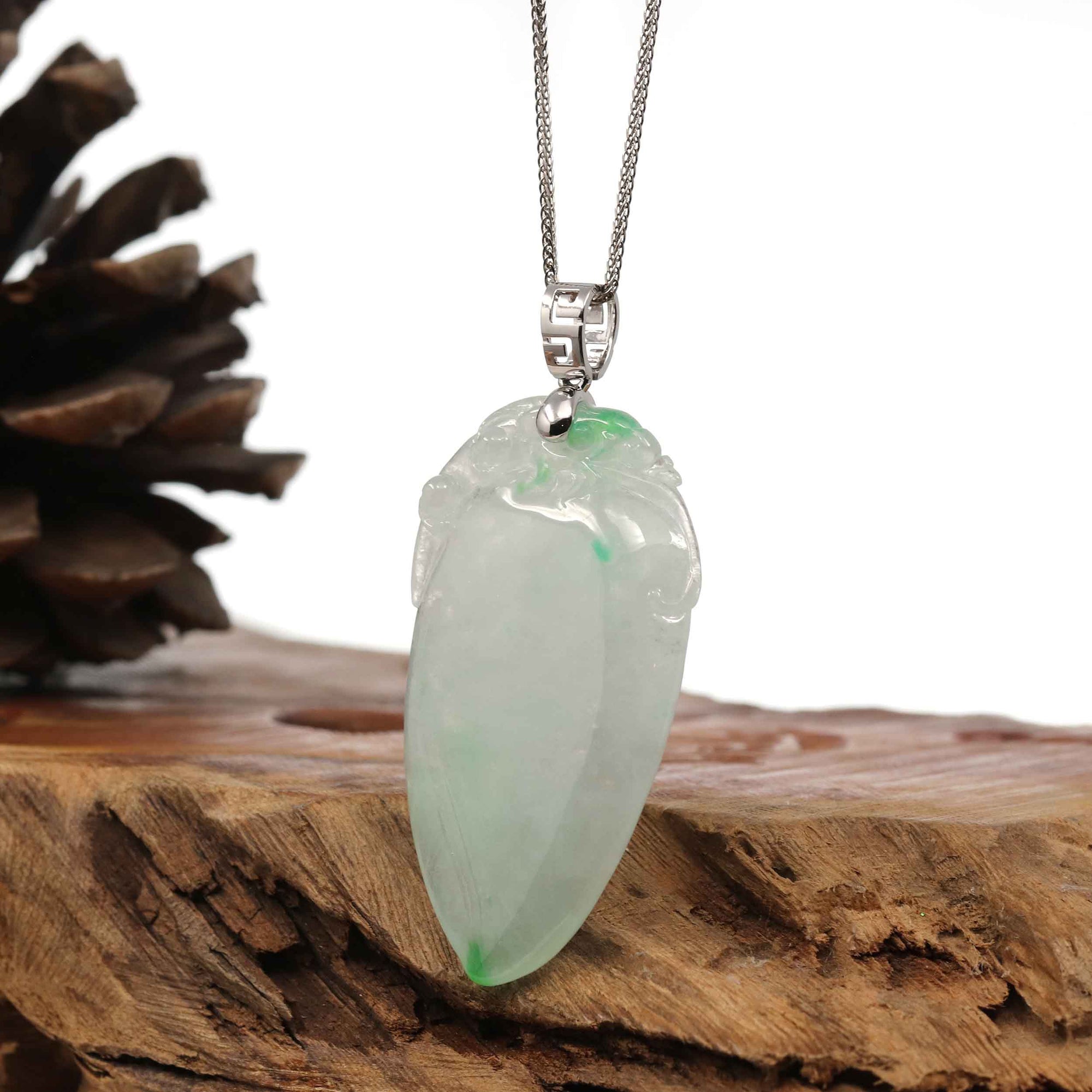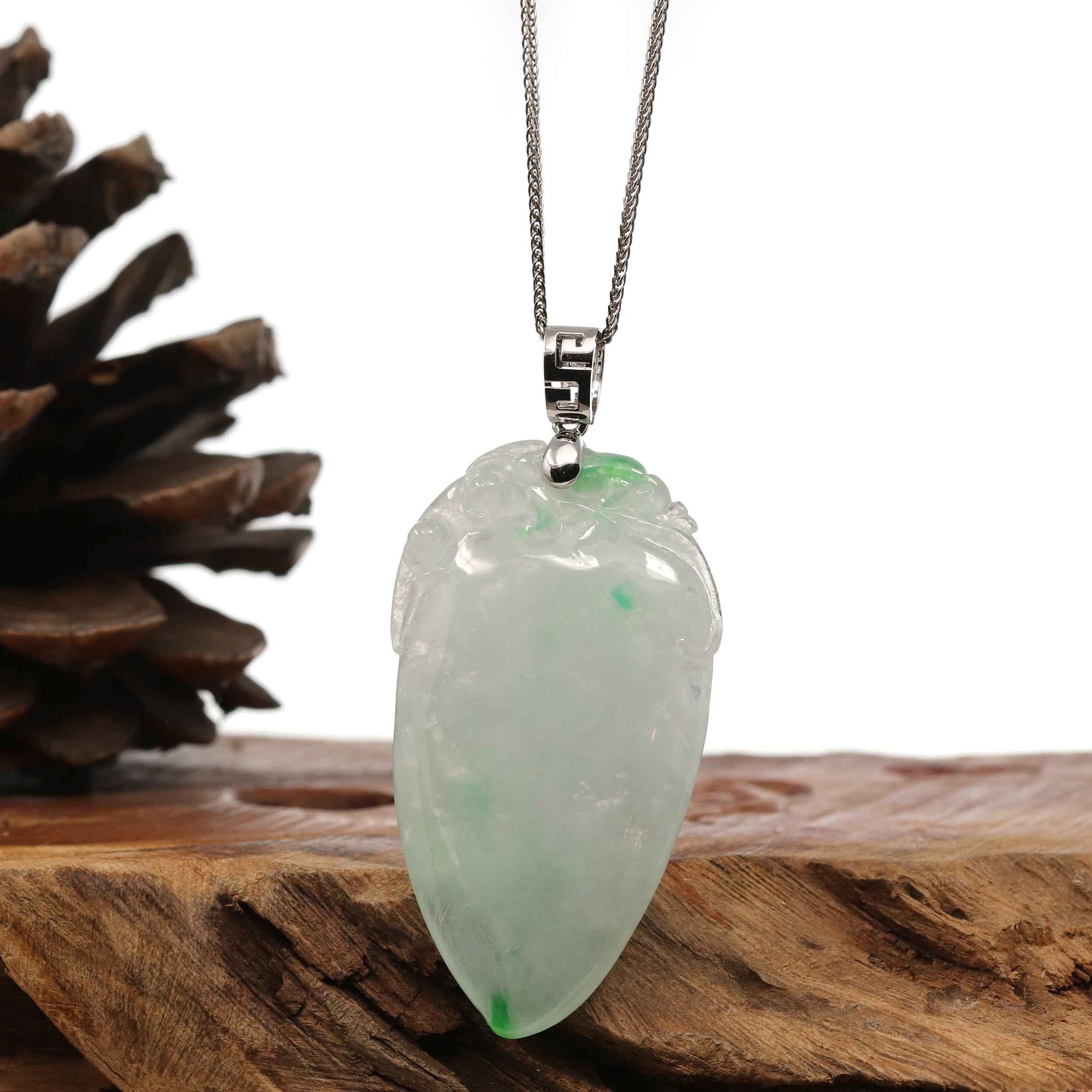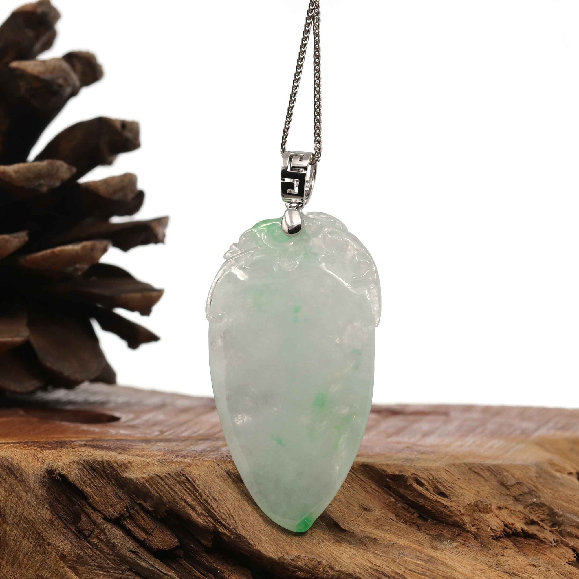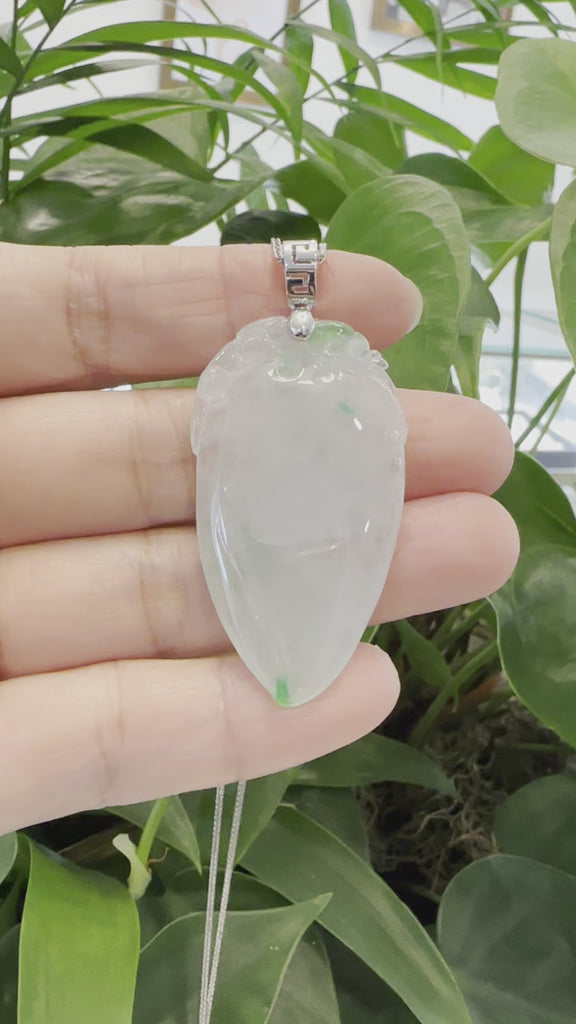 Natural Ice Green Jadeite Jade Shou Tao ( Longevity Peach ) Necklace With 14k White Gold Bail