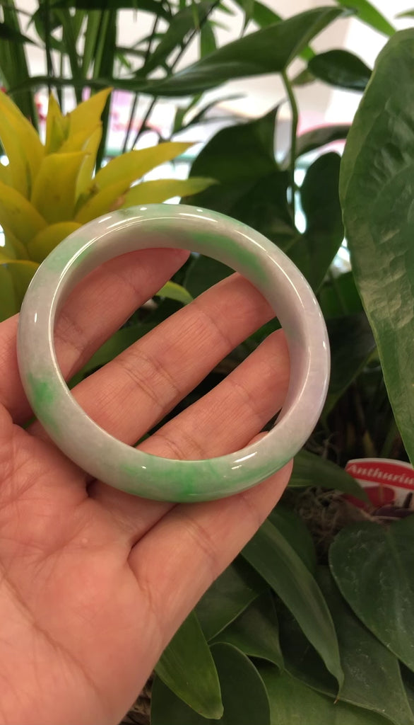 * DETAILS--- Genuine Burmese Jadeite Jade Bangle Bracelet. This bangle is made with high-quality genuine Burmese Jadeite jade, The jade texture is so smooth with vibrant green color and whole lavender colors inside. It looks perfect with vibrant green parts and translucent. and lovely natural lavender color throughout all pieces. The bangle looks so clean and looks much better in person. It's a very perfect jade bangle for yourself or your love.