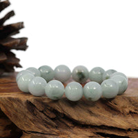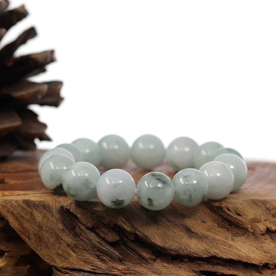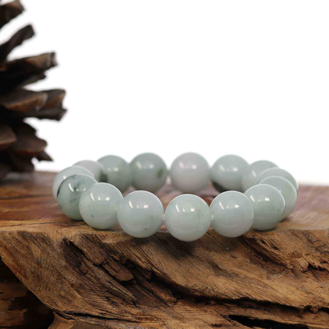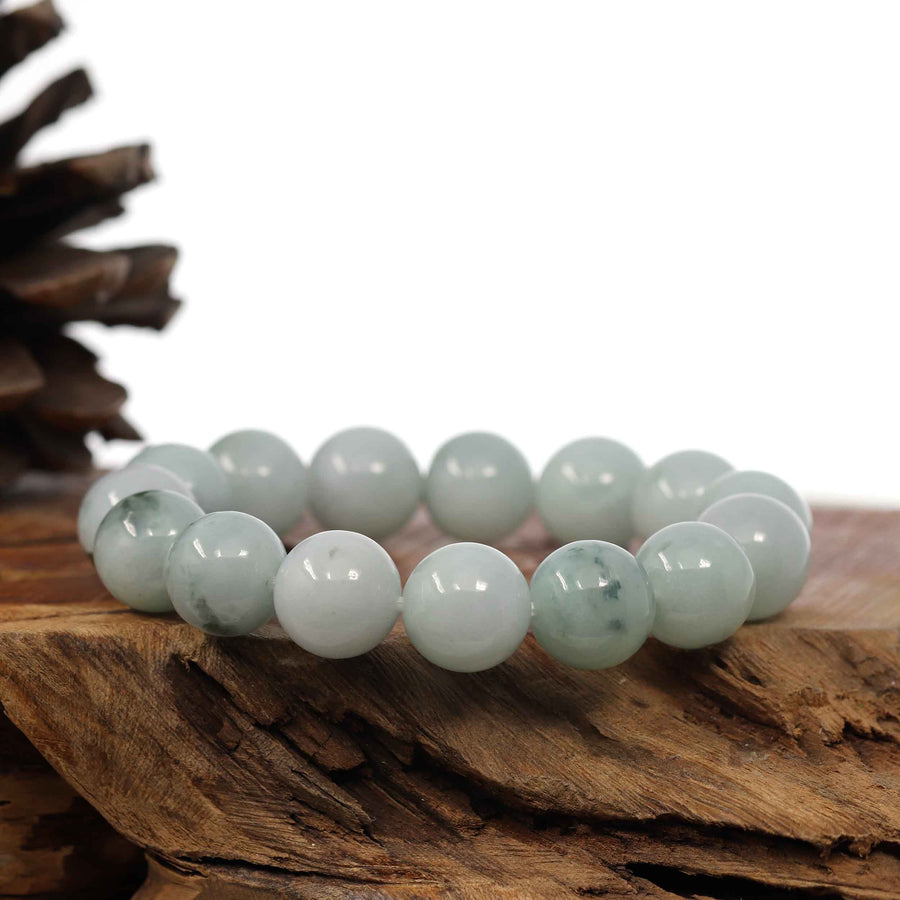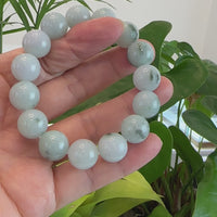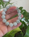 Natural Jadeite Jade Round Blue Green Large Beads Men's Bracelet (14mm)