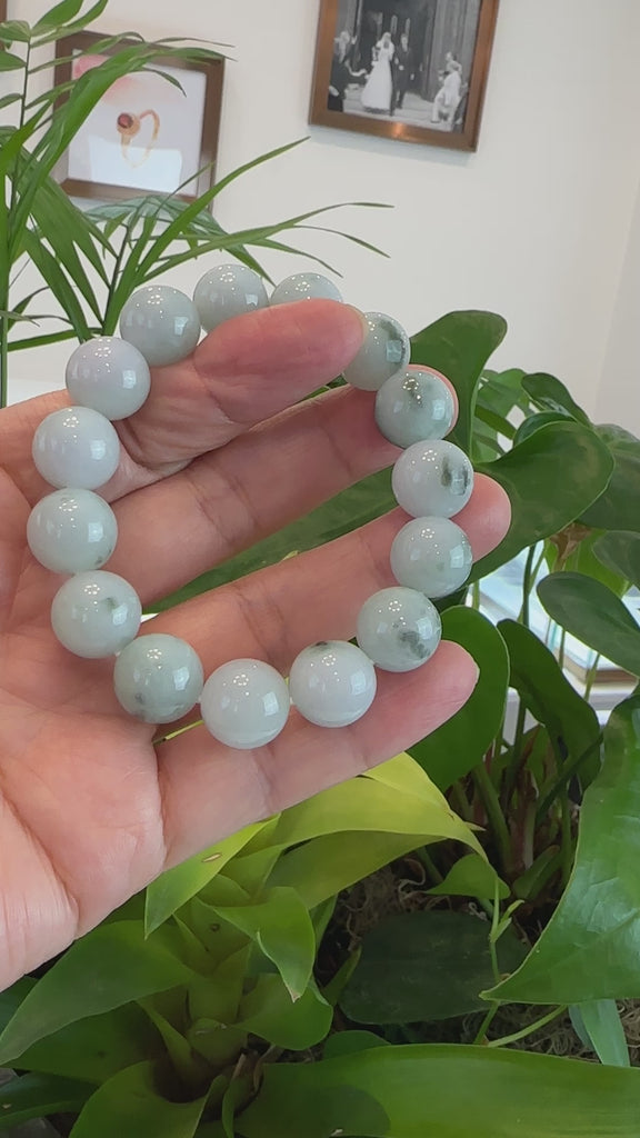 * DETAILS---Genuine Jadeite Jade Large Beads Bracelet. This bracelet is made with very genuine blue green jadeite jade. The bead's texture is so smooth and translucent. The classic round large beads with the deep blue color looks completely unique. It's a special gift for yourself or your love. (Sent at random)