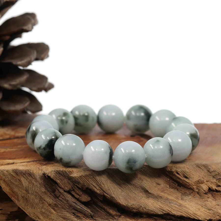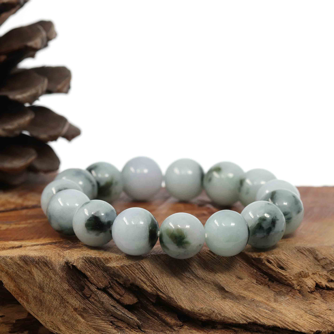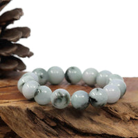 Natural Jadeite Jade Round Blue Green Large Beads Men's Bracelet (14mm)
