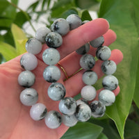 * DETAILS---Genuine Jadeite Jade Large Beads Bracelet. This bracelet is made with very genuine blue green jadeite jade. The bead's texture is so smooth and translucent. The classic round large beads with the deep blue color looks completely unique. It's a special gift for yourself or your love. (Sent at random)