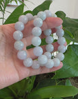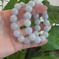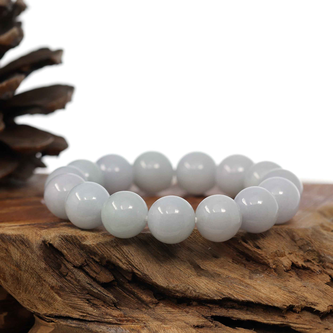 Natural Jadeite Jade Round Light Lavender Large Beads Men's Bracelet (14mm)