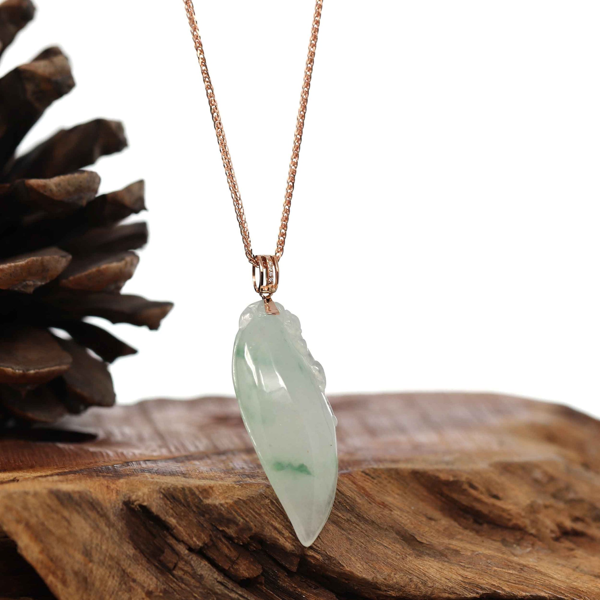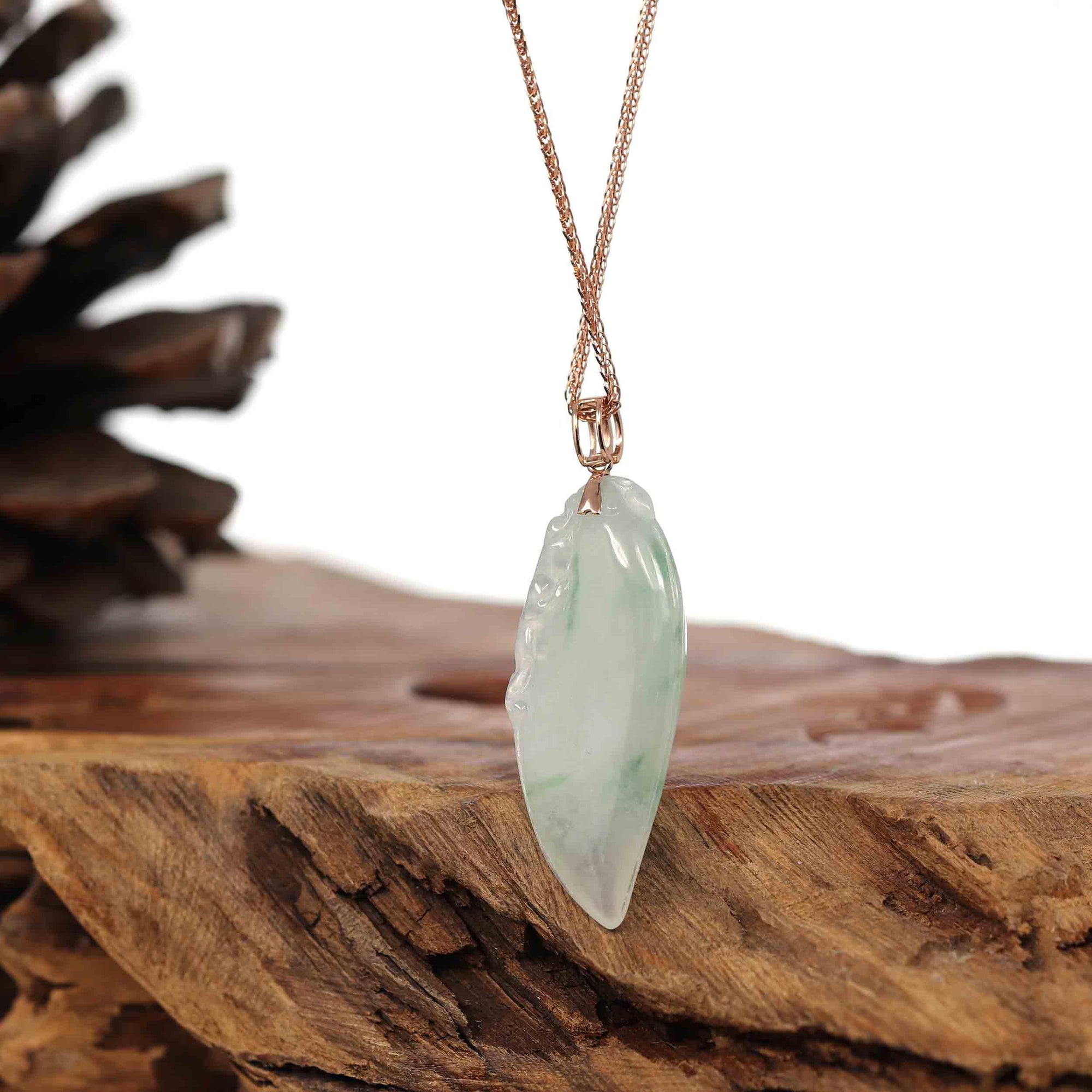 *Design concept-- "Shou Tao" in Chinese literally means Longevity Peach; from Chinese folklore that in the Chinese mythical heaven, there is a peach tree garden where all the peaches are magical and add years to your life. This necklace portrays the timeless, good luck symbol in natural jadeite jade. This piece is one of a kind, and you will not find another like it. It's worn as a good luck charm. Perfect for a gift for a friend or family.