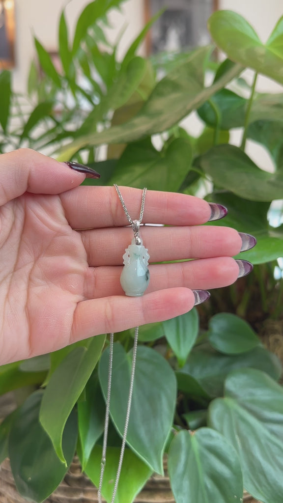Natural Unique Jadeite Jade Lucky Bottle Necklace with 14k White Gold Bail