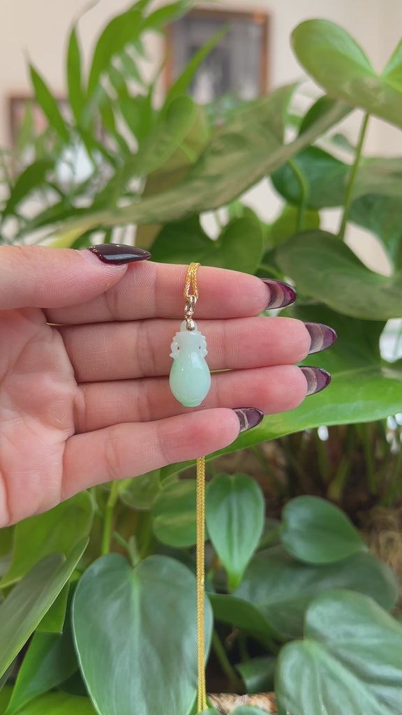 Natural Unique Jadeite Jade Lucky Bottle Necklace with 14k Yellow Gold Bail