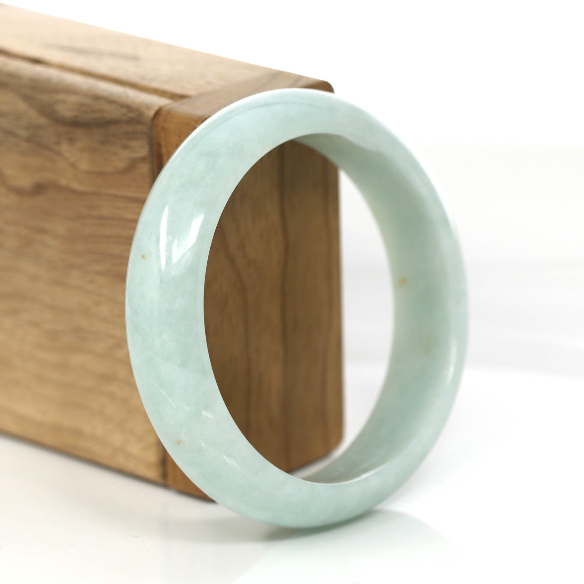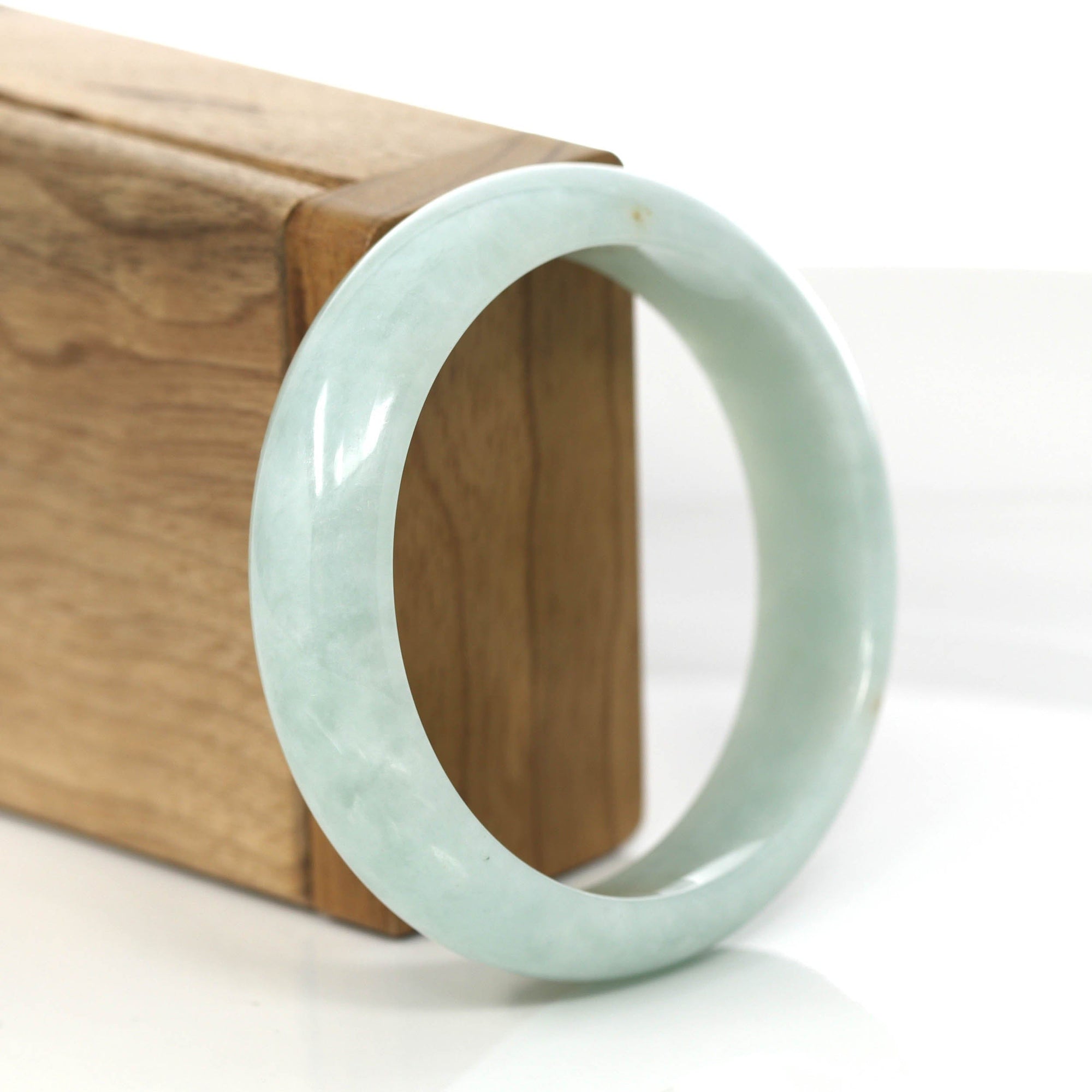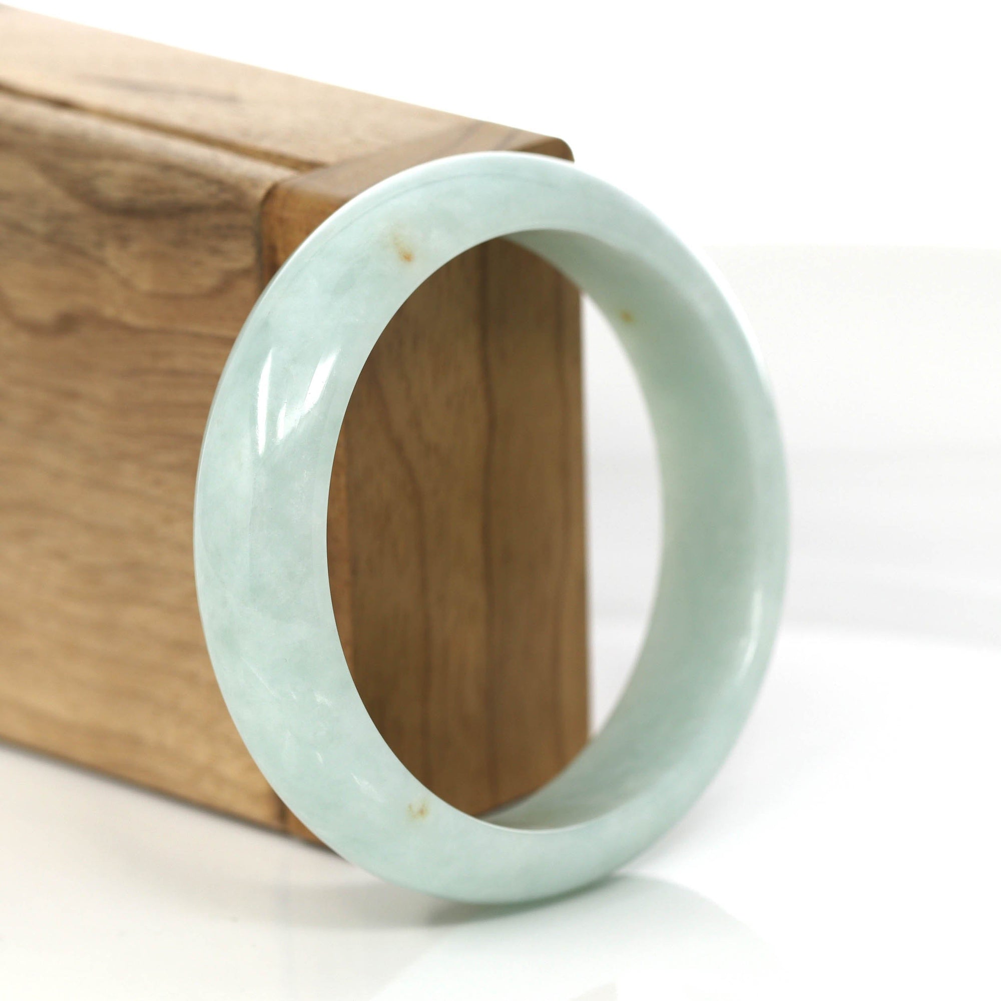 * DETAILS--- This bangle is made with Burmese jadeite jade. The jade texture is smooth with a little clouds. Looks clear with light green color and yellow spots. It's an princess half round comfit style. You know the genuine jade bangle is always meaningful for someone.  It's a very unique gift for yourself and your love.