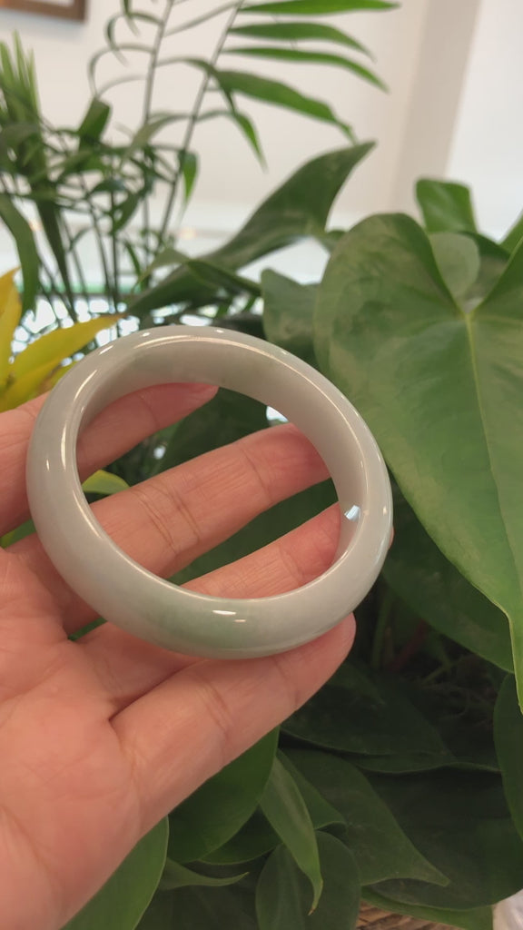 * DETAILS--- This bangle is made with Burmese jadeite jade. The jade texture is smooth and translucent. Looks clear with blue green color. It's an princess half round comfit style. You know the genuine jade bangle is always meaningful for someone. It's a very unique gift for yourself and your love.