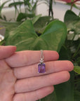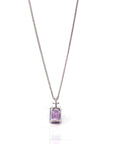 Sterling Silver Natural Amethyst Emerald Cut Pendant Necklace With CZ