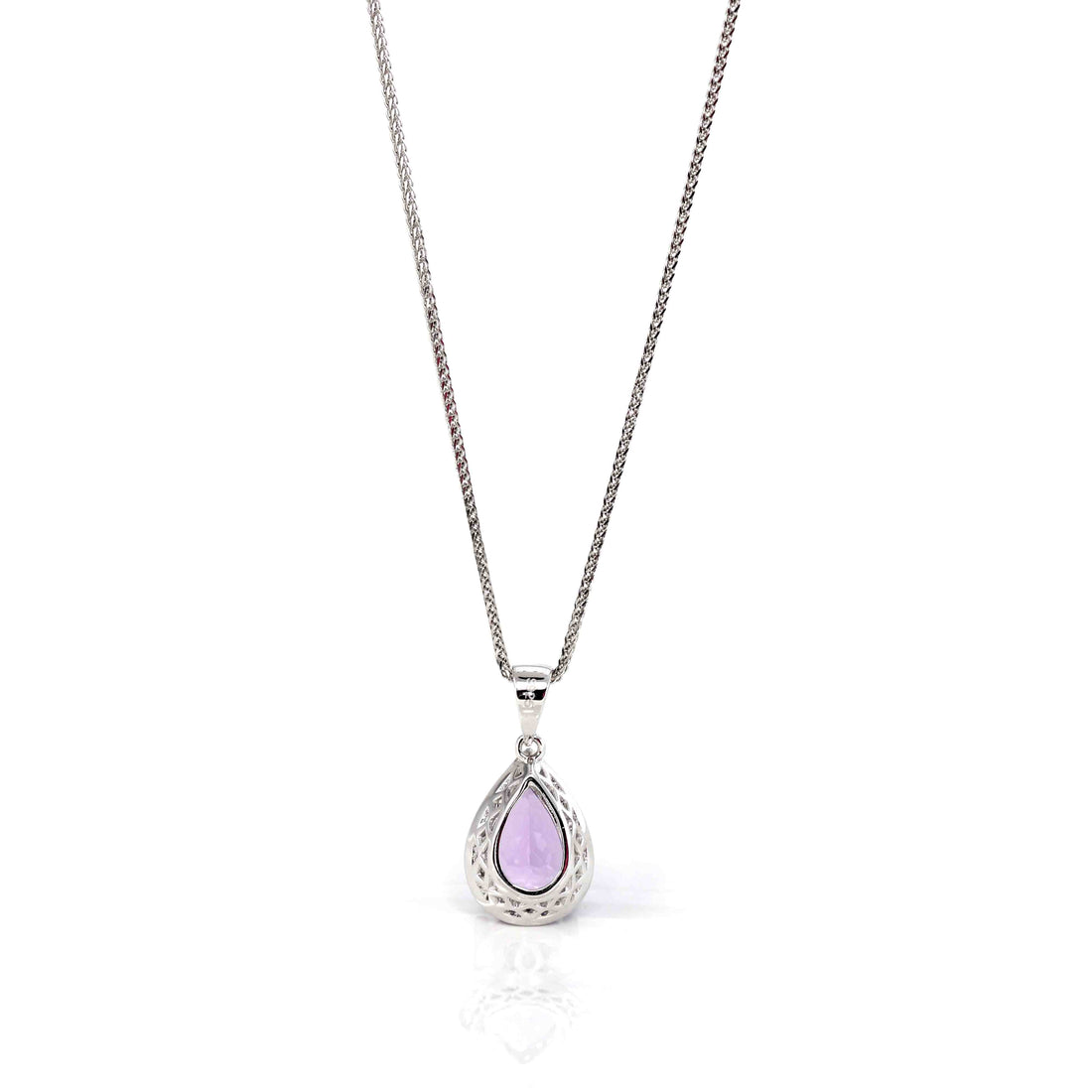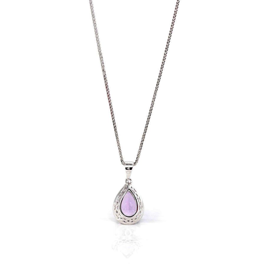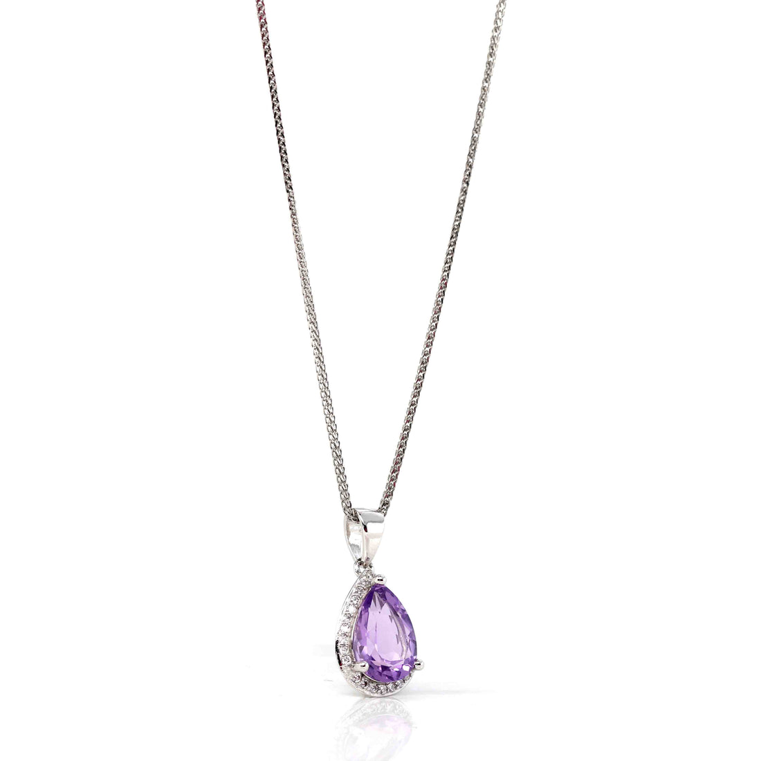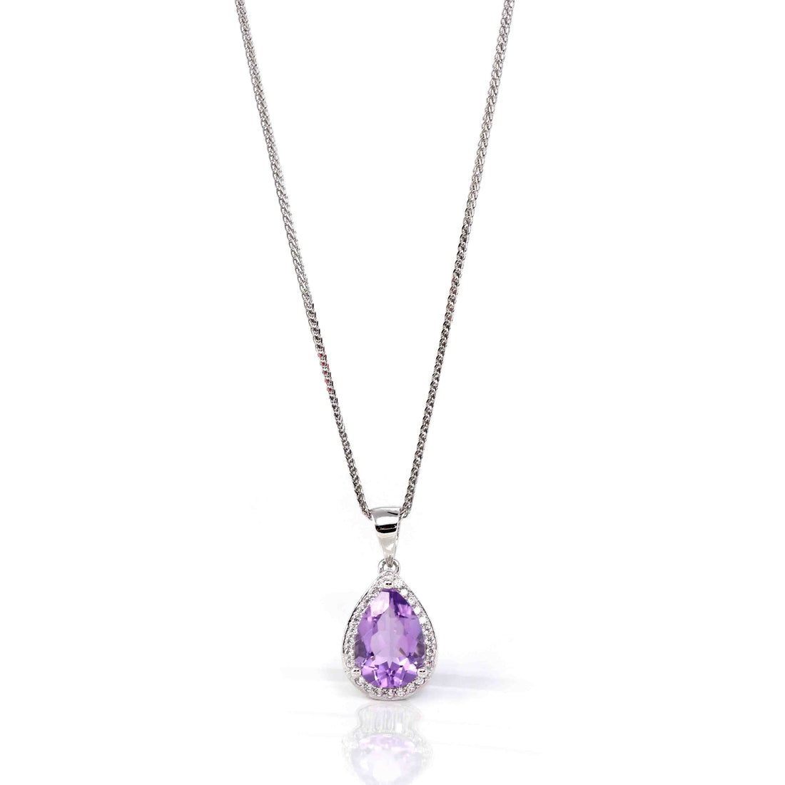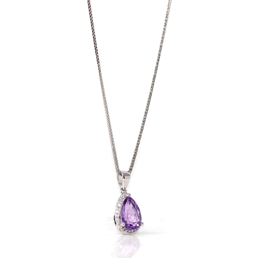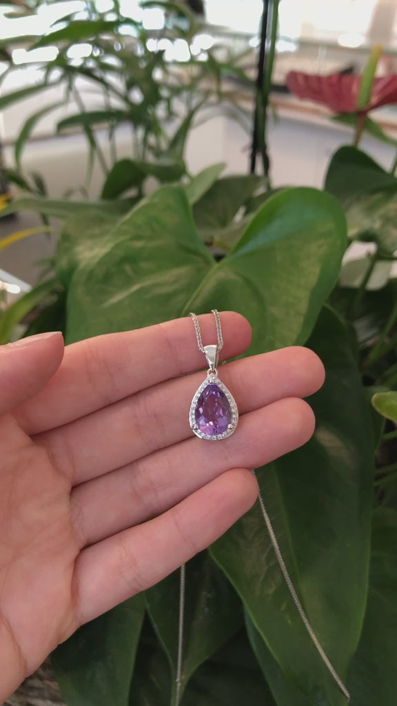 Sterling Silver Natural Amethyst Tear drop Pendant Necklace With CZ