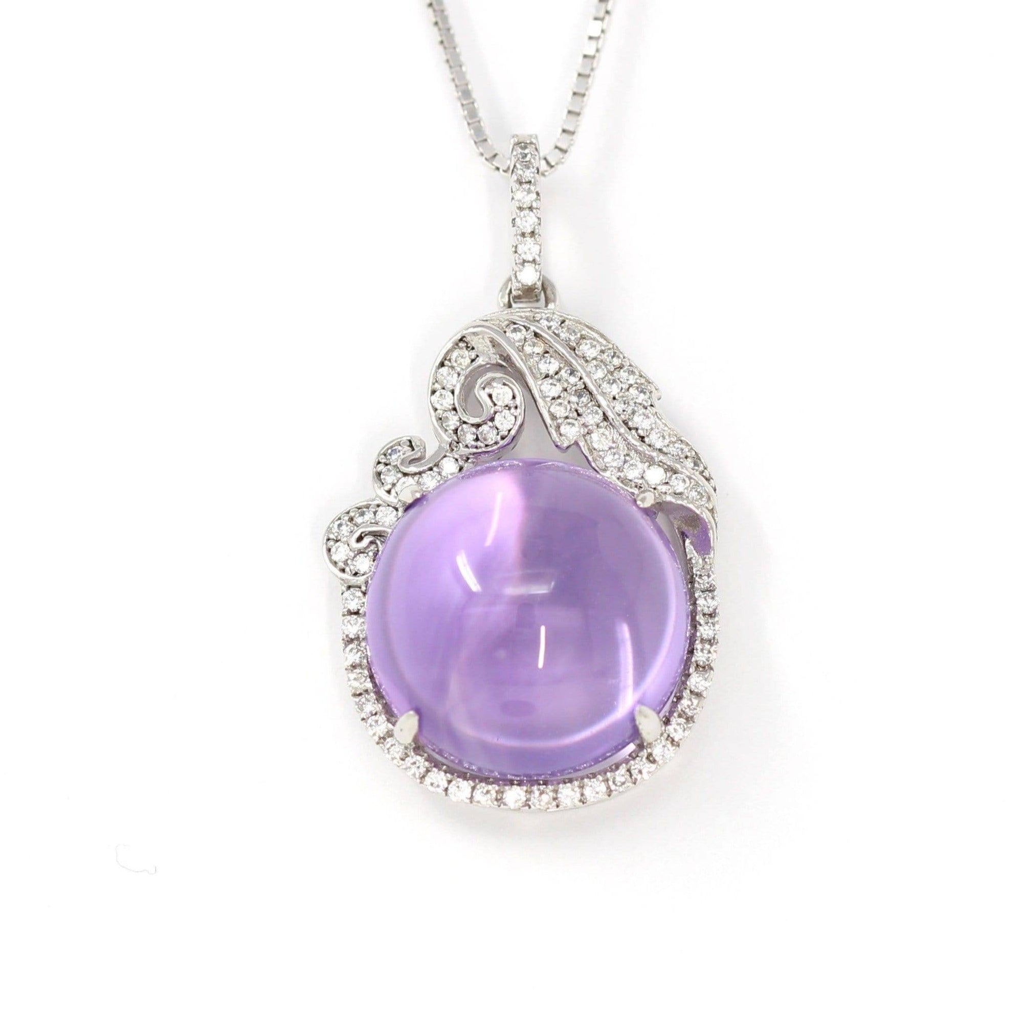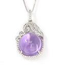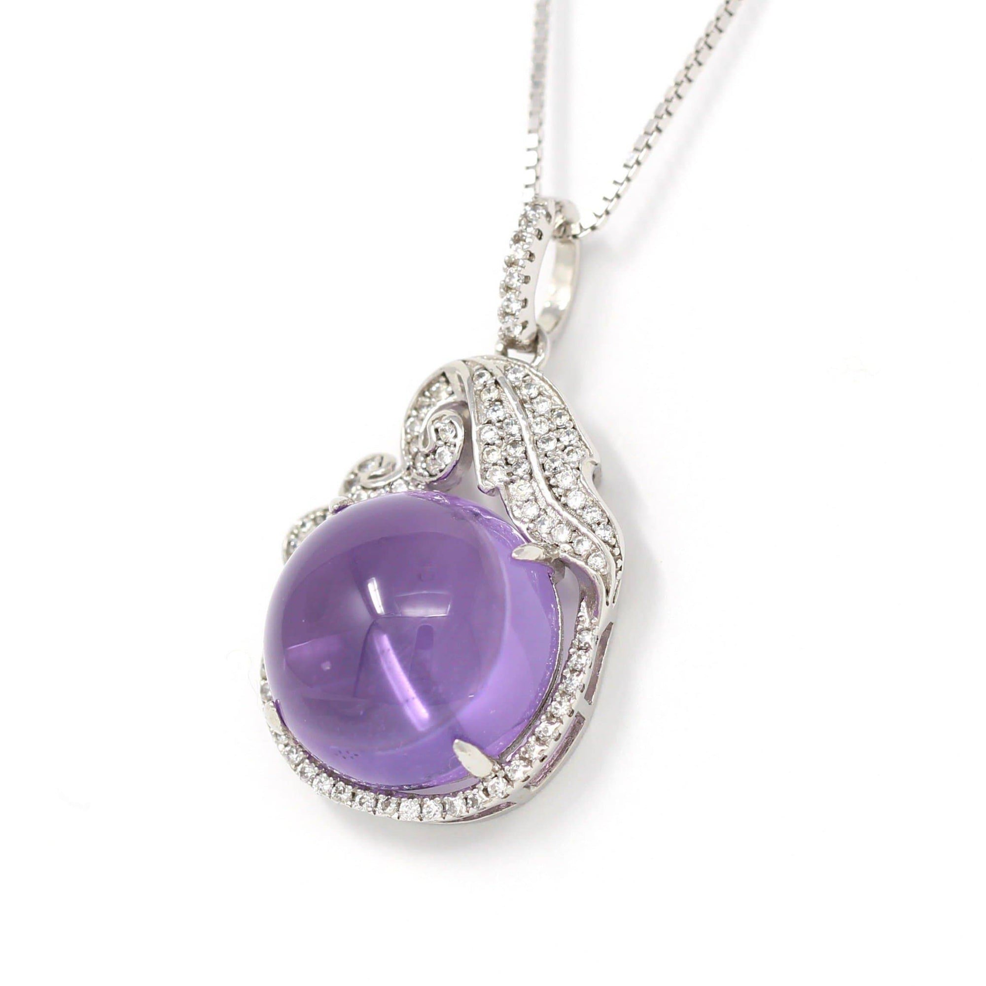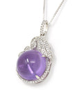 Sterling Silver Natural Cabochon Amethyst Necklace With CZ