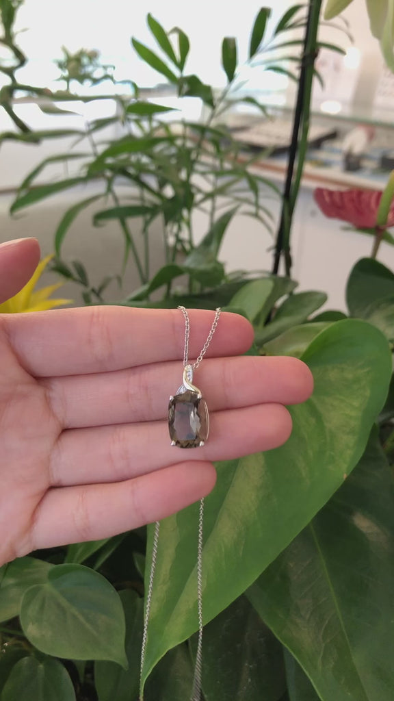 Sterling Silver & 14k Yellow Gold Natural Smoky Quartz Pendant Necklace With CZ