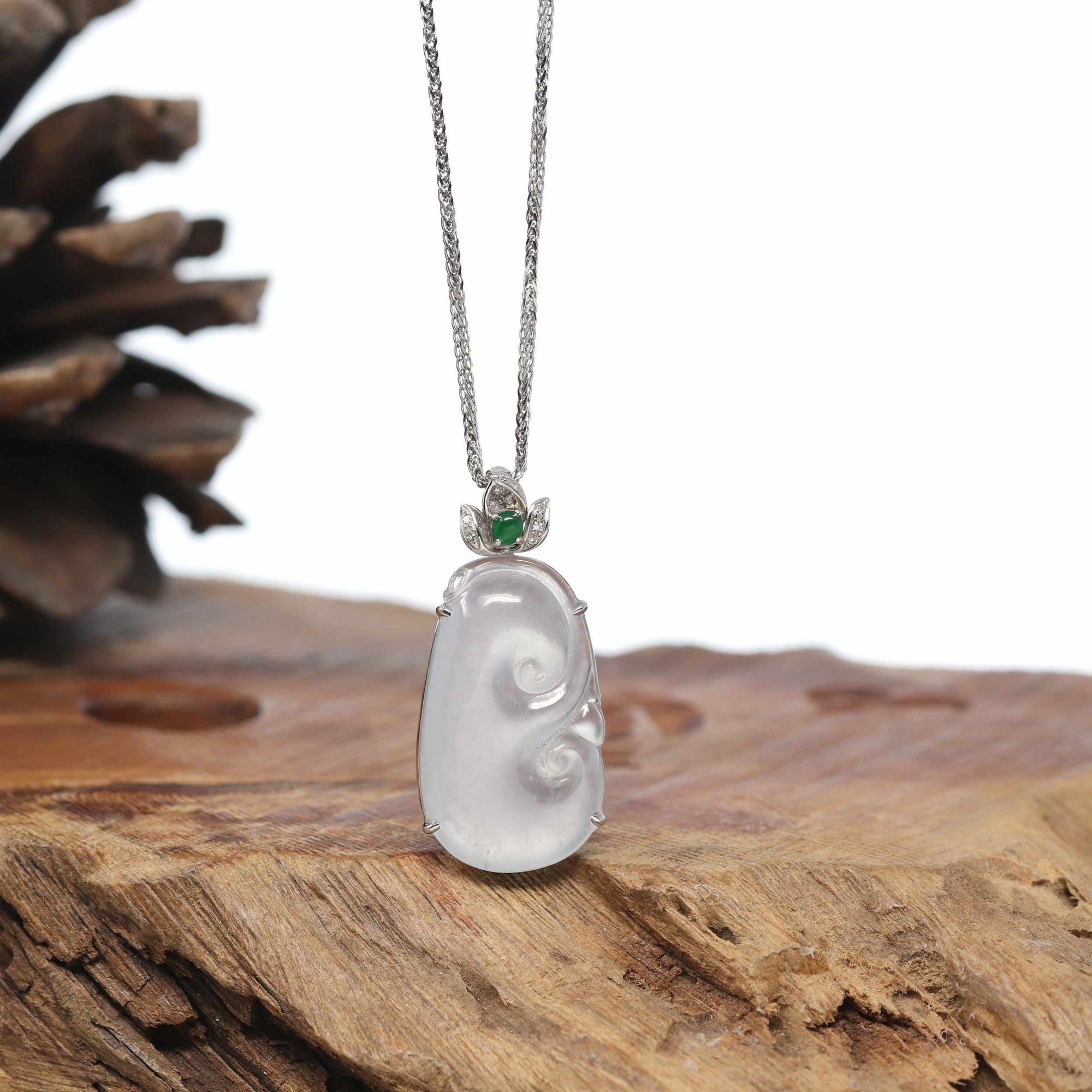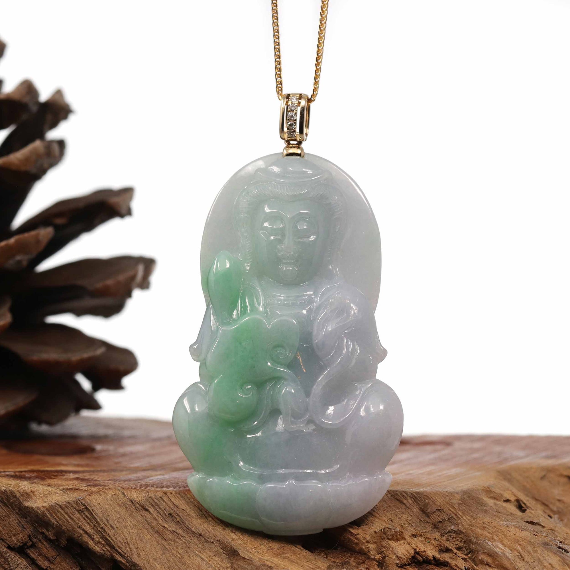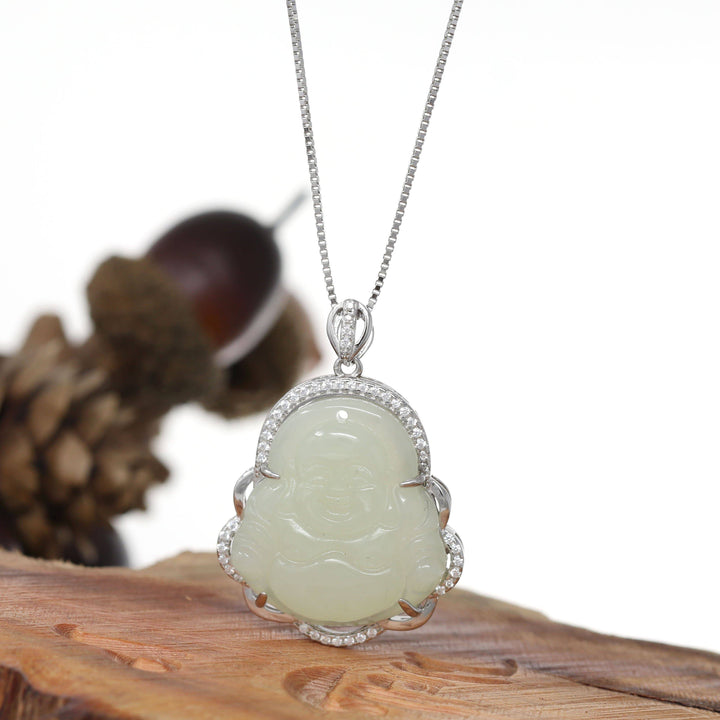 18K White Gold High-End Imperial Jadeite Jade Buddha Necklace with Diamonds