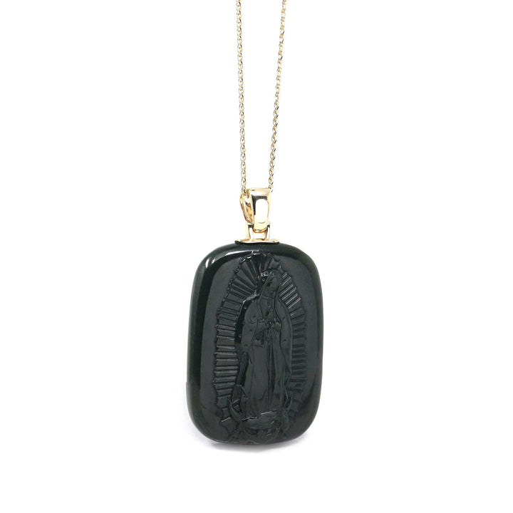 Baikalla™ 14K Yellow Gold Genuine Nephrite Black Jade " Jesus " Pendant Necklace