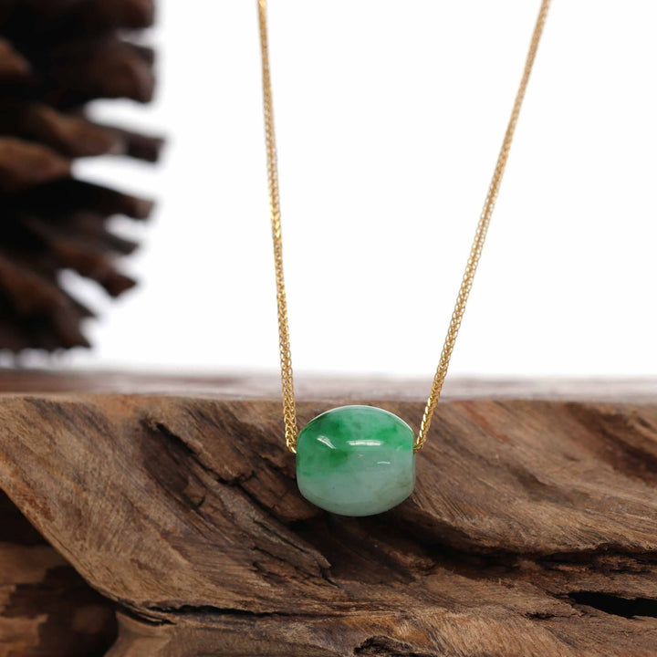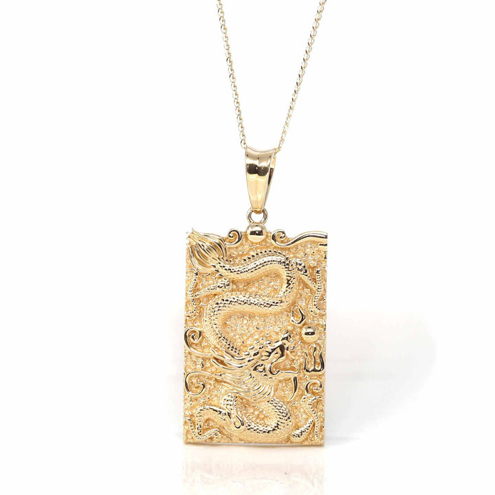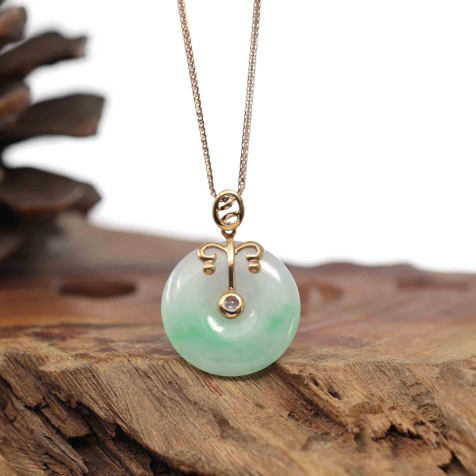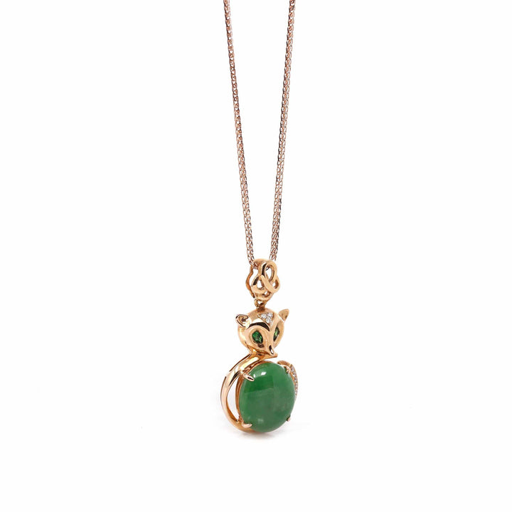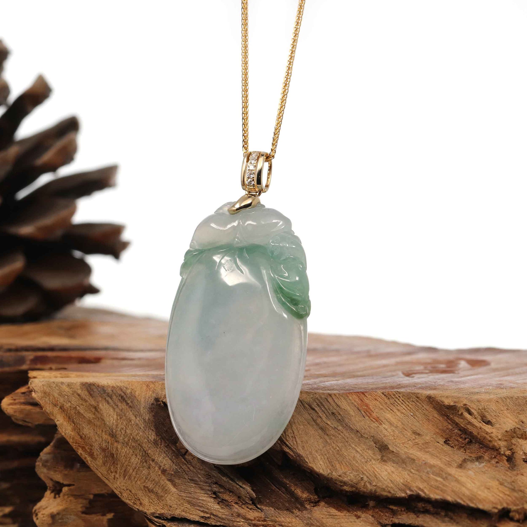 "Guangong" Large 14k Yellow Gold Genuine Apple Green Nephrite Jade with VS1 Diamonds Pendant Necklace