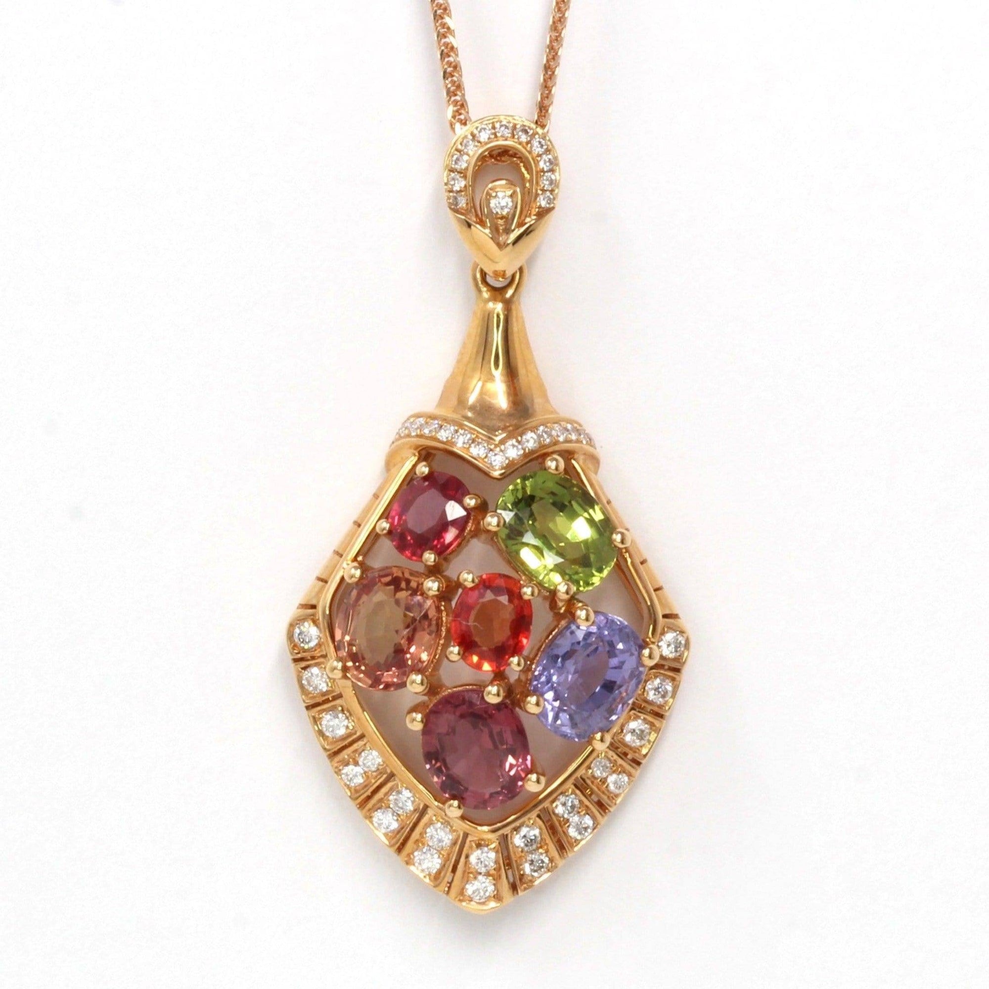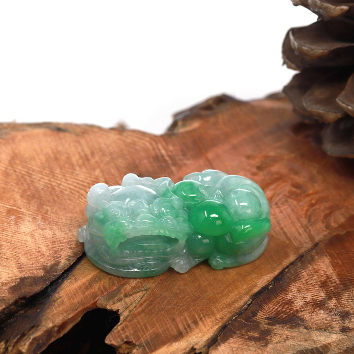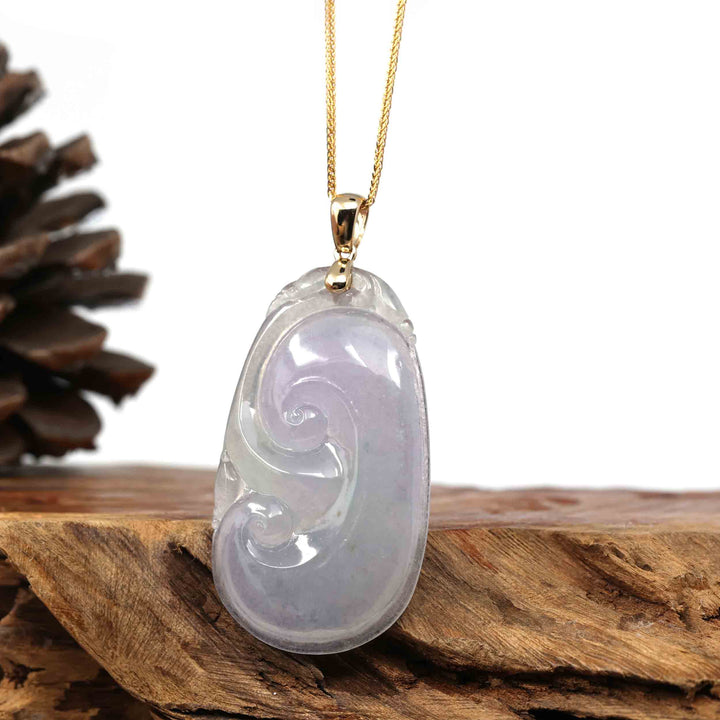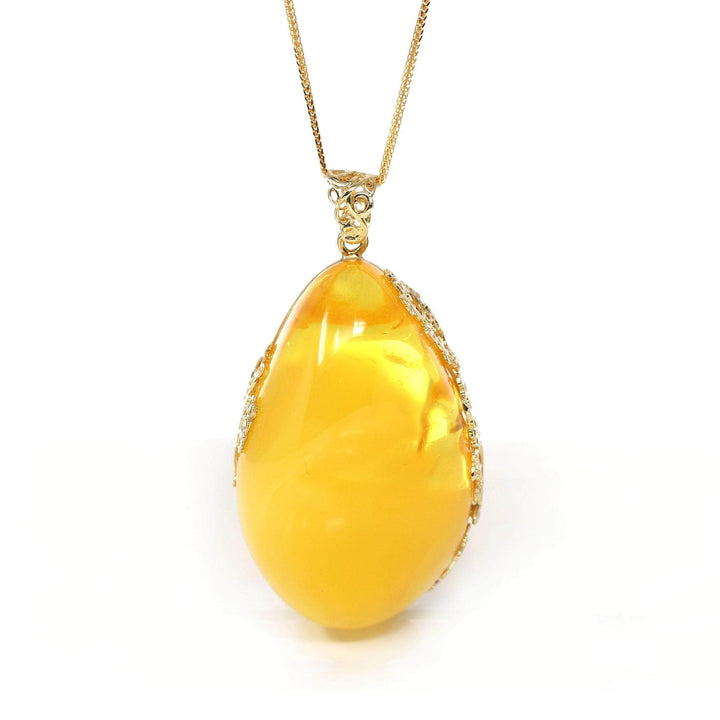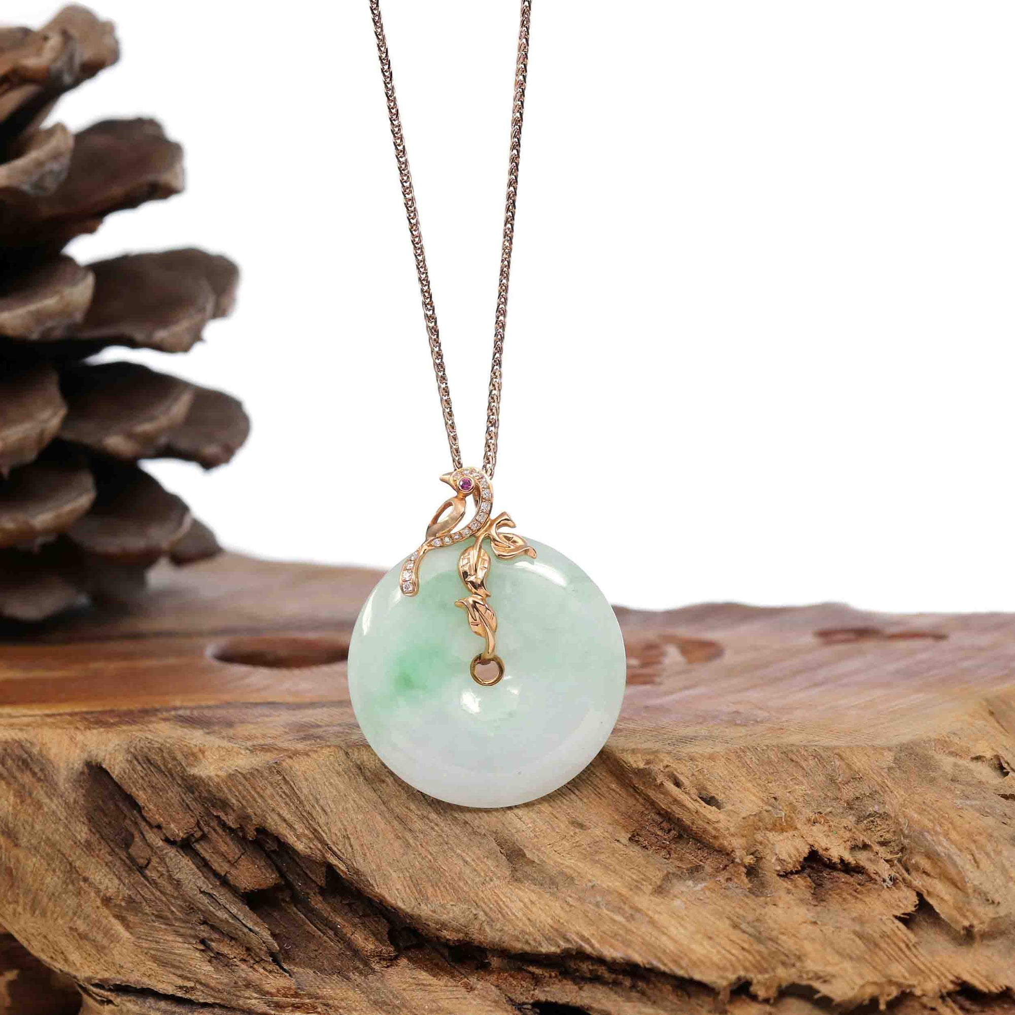 "Guangong" Large 14k Yellow Gold Genuine Apple Green Nephrite Jade with VS1 Diamonds Pendant Necklace