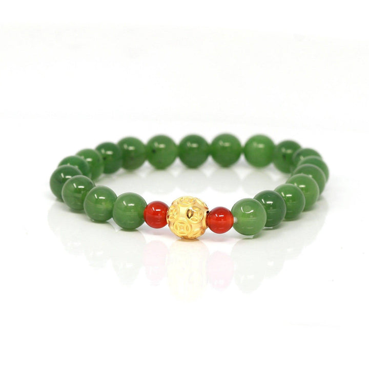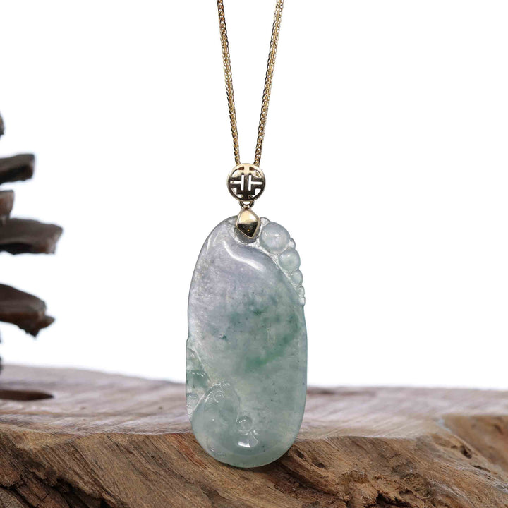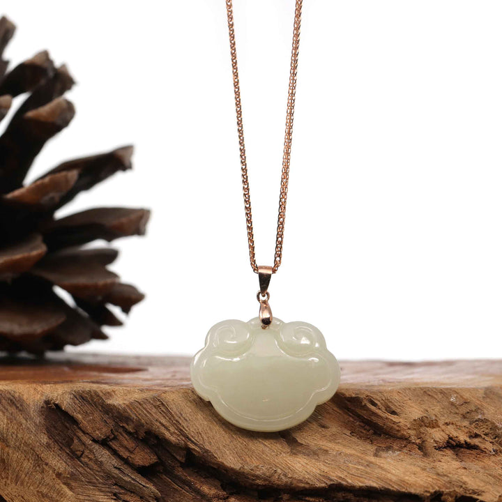 Baikalla™ "Laughing Buddha" Large 14k Yellow Gold Genuine Nephrite Green Jade Buddha Pendant