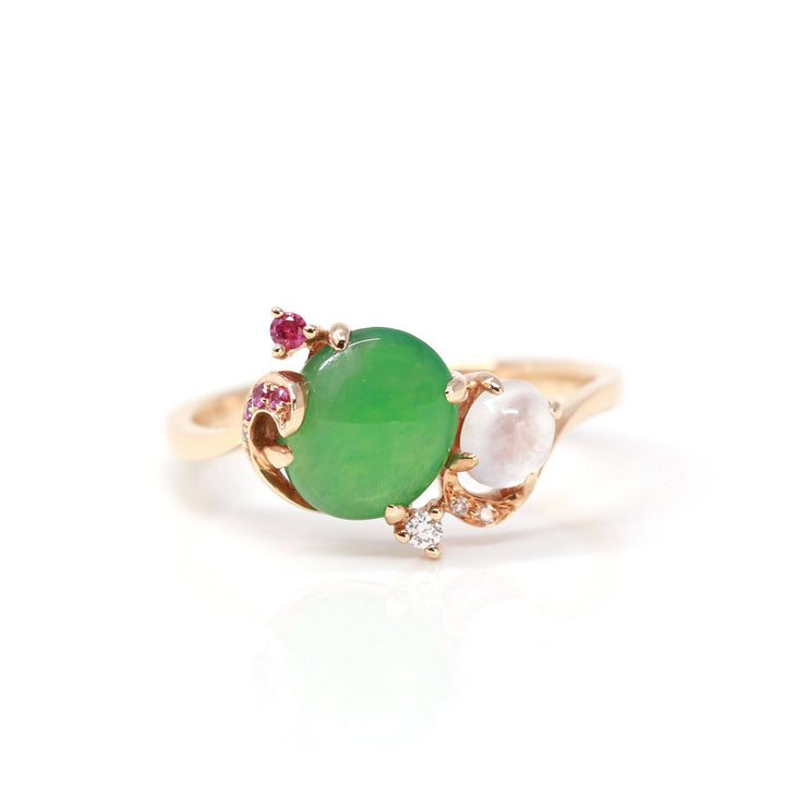 Baikalla 18k White Gold Exceptional Quality Natural Imperial Green Jadeite Jade Engagement Ring With Diamonds