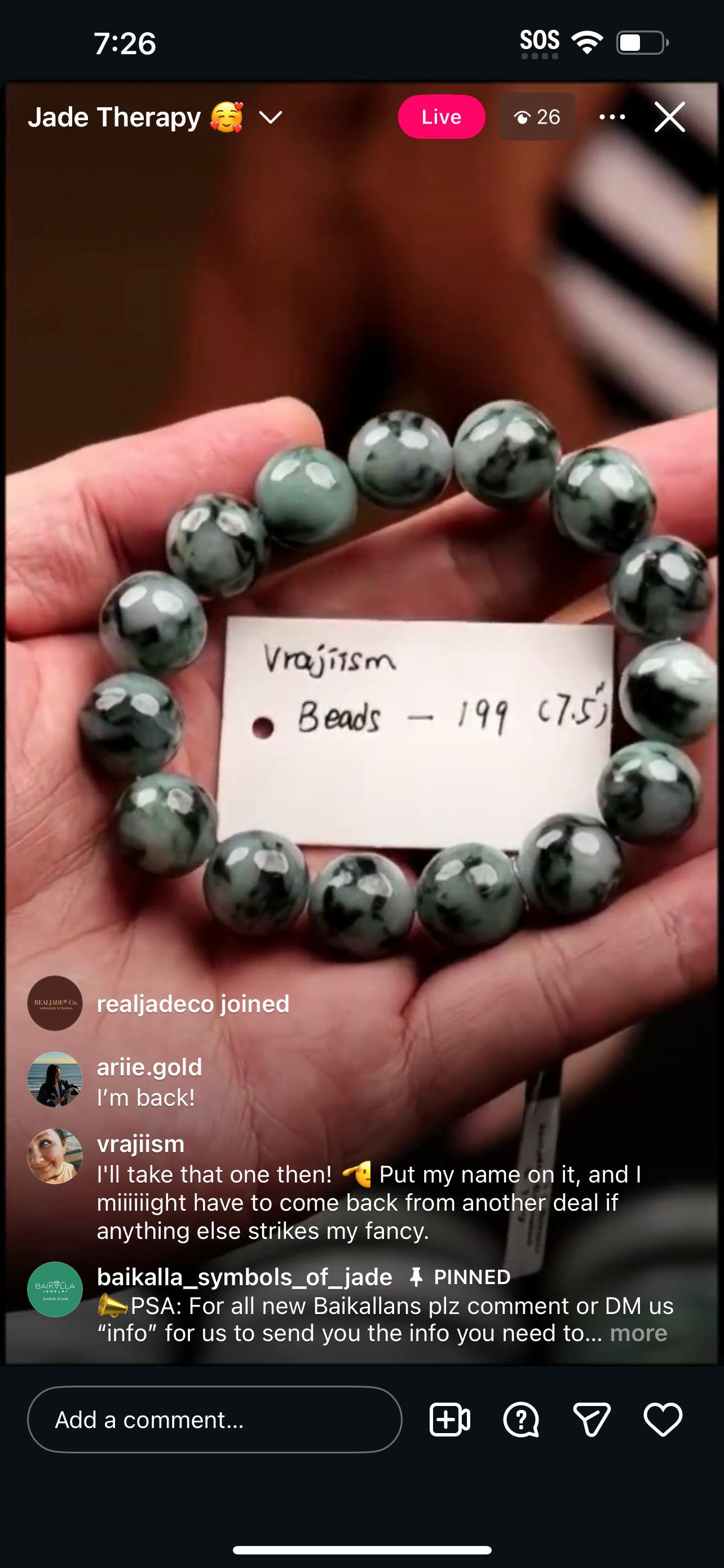 "Live" Green Jadeite Jade Bead Bracelet (12/01/2025)