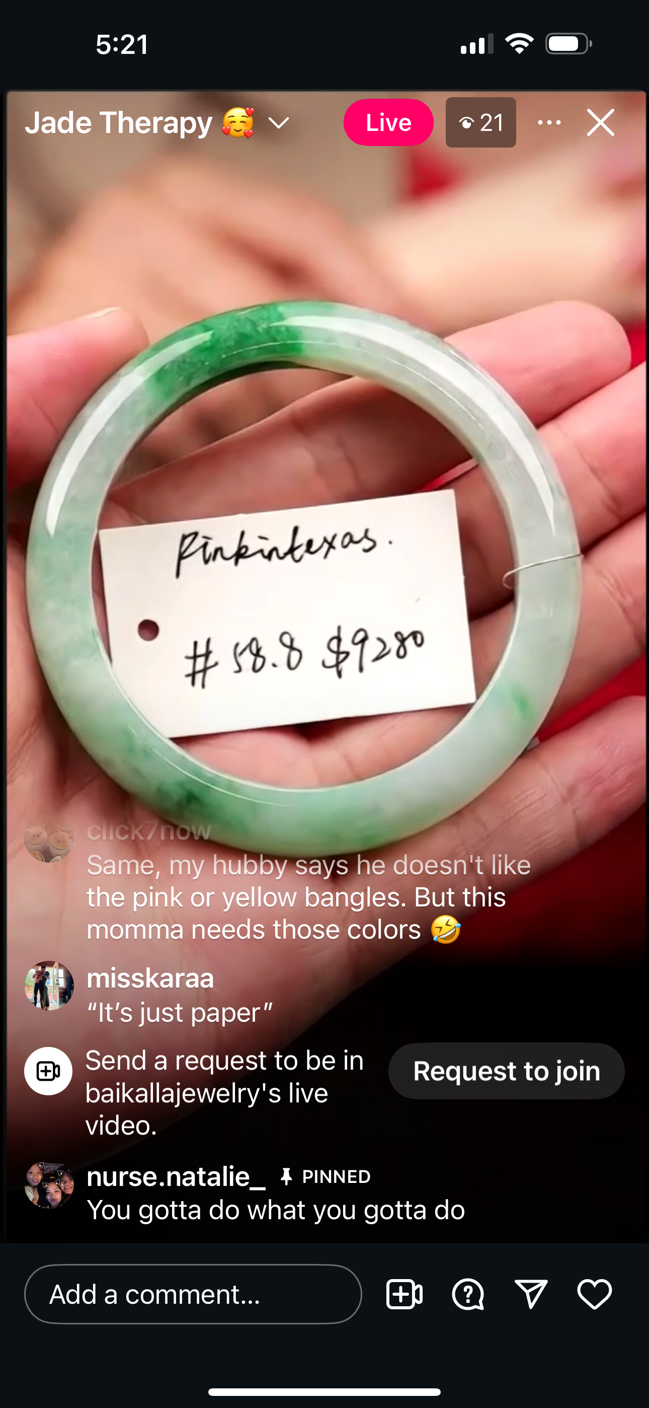 "Live" Icy Green Natural Jadeite Jade Finger Bangle (12/03/2025)