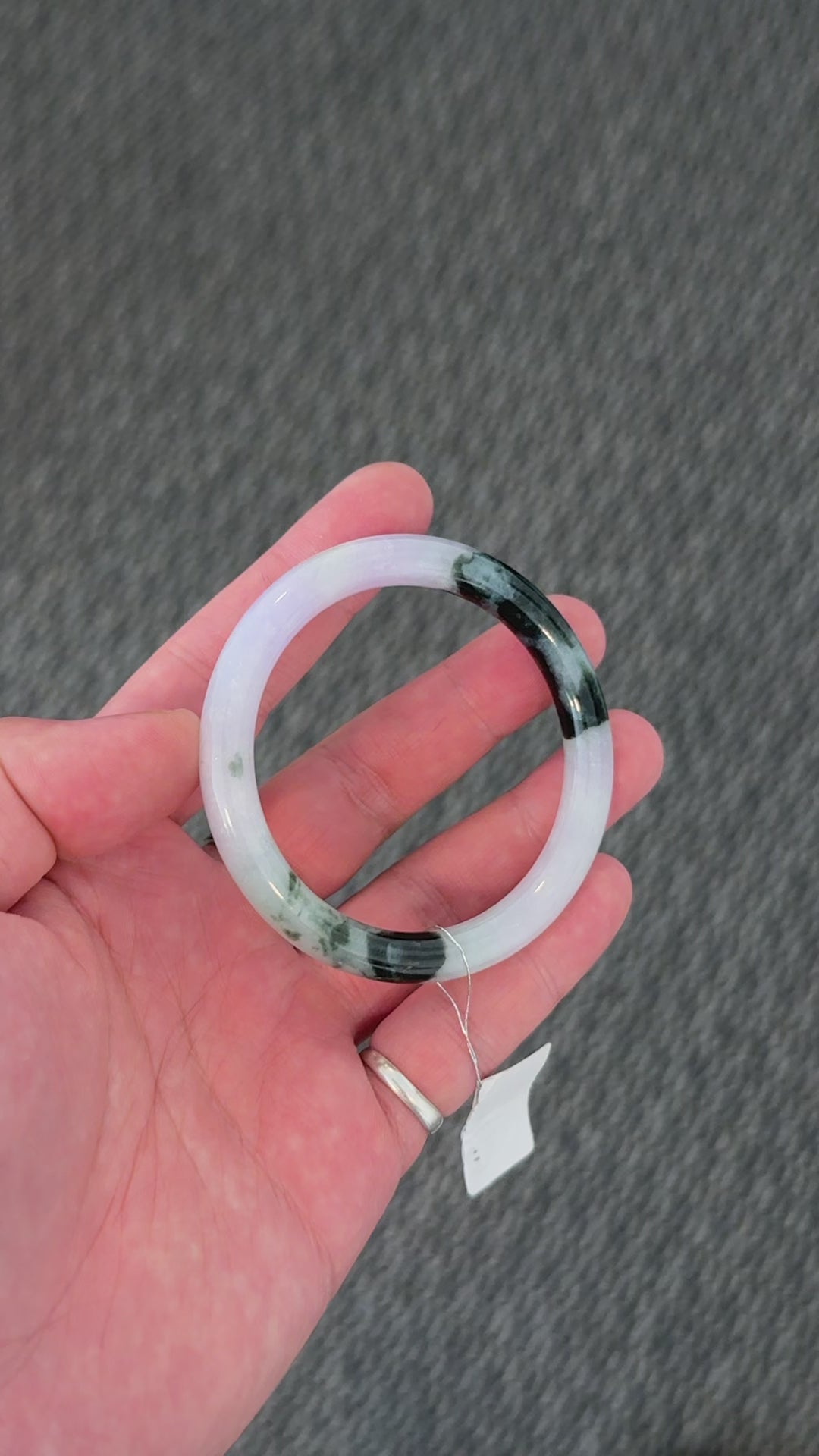 Natural Lavender & Blue Flower Jadeite Jade Traditional Bangle " (08/25/25)