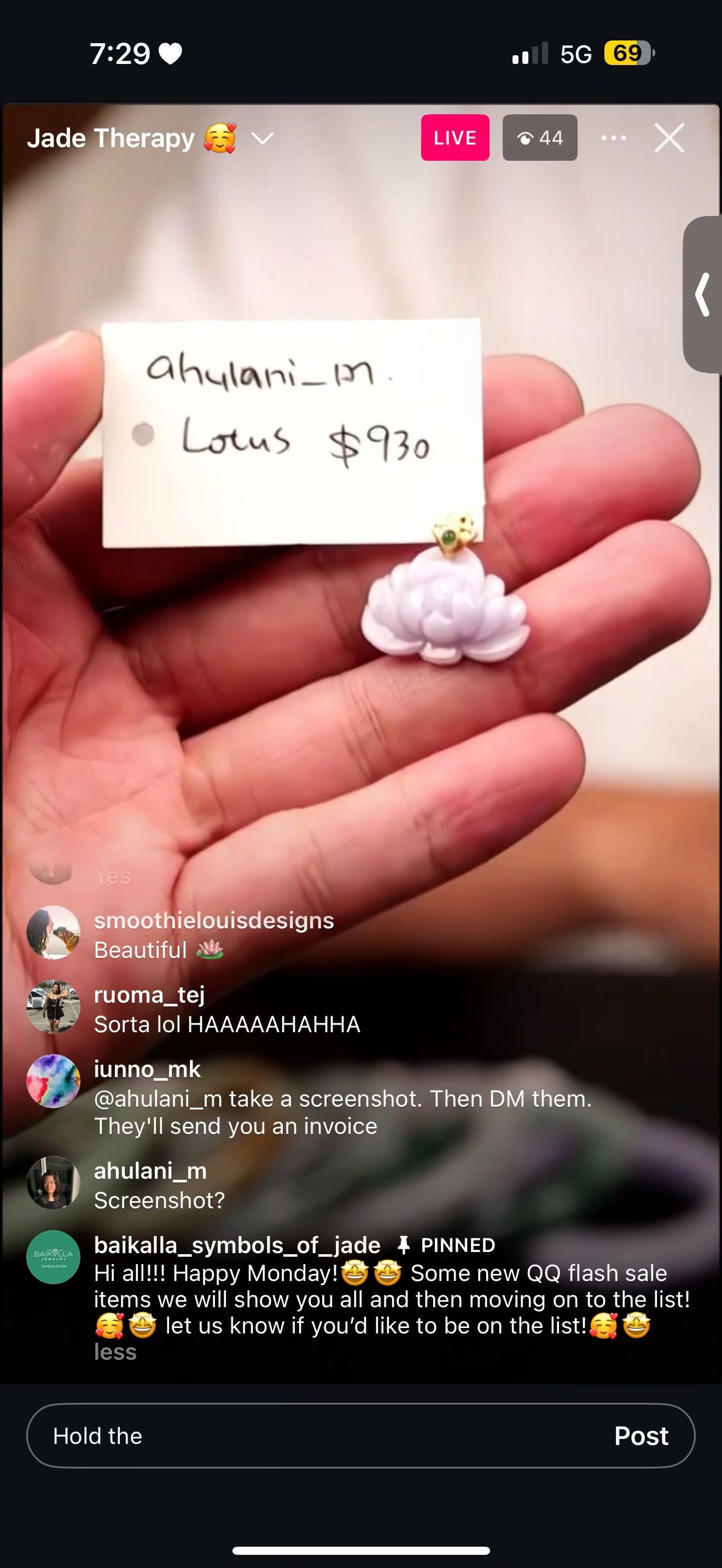 "Live" 18k Natural Light Lavender Jadeite Jade Lotus Pendant" (07/28/25)