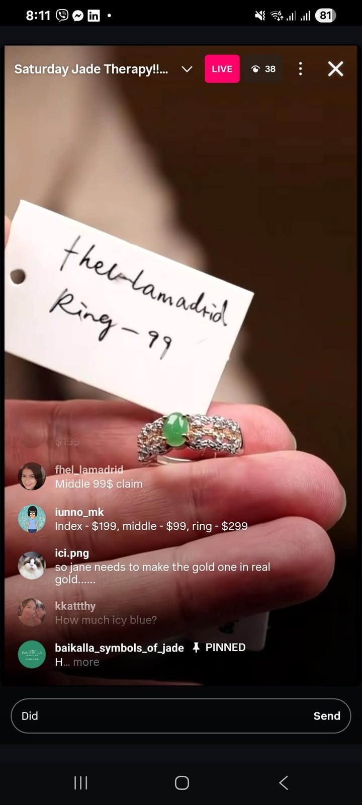 "Live" 18k Gold Natural Icy Imperial Green Jadeite Jade Ring (09/15/25)
