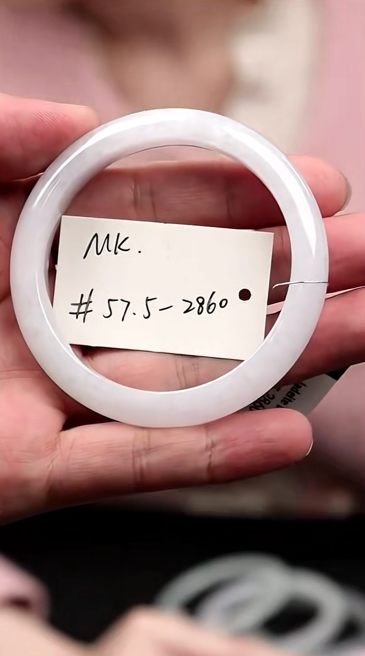 "Live" Natural Icy Faint Pinkish White Comfort Fit Jadeite Jade Bangle (10/25/25)