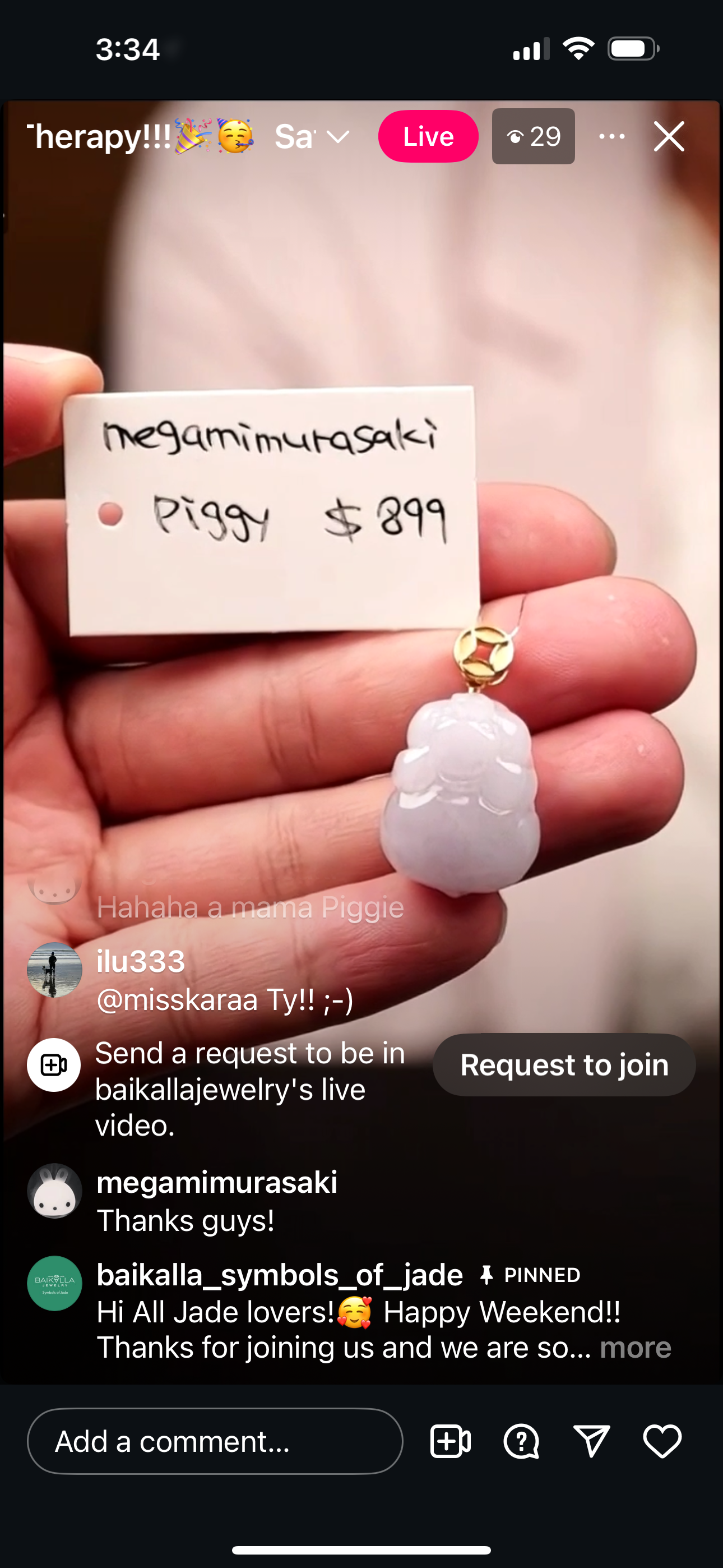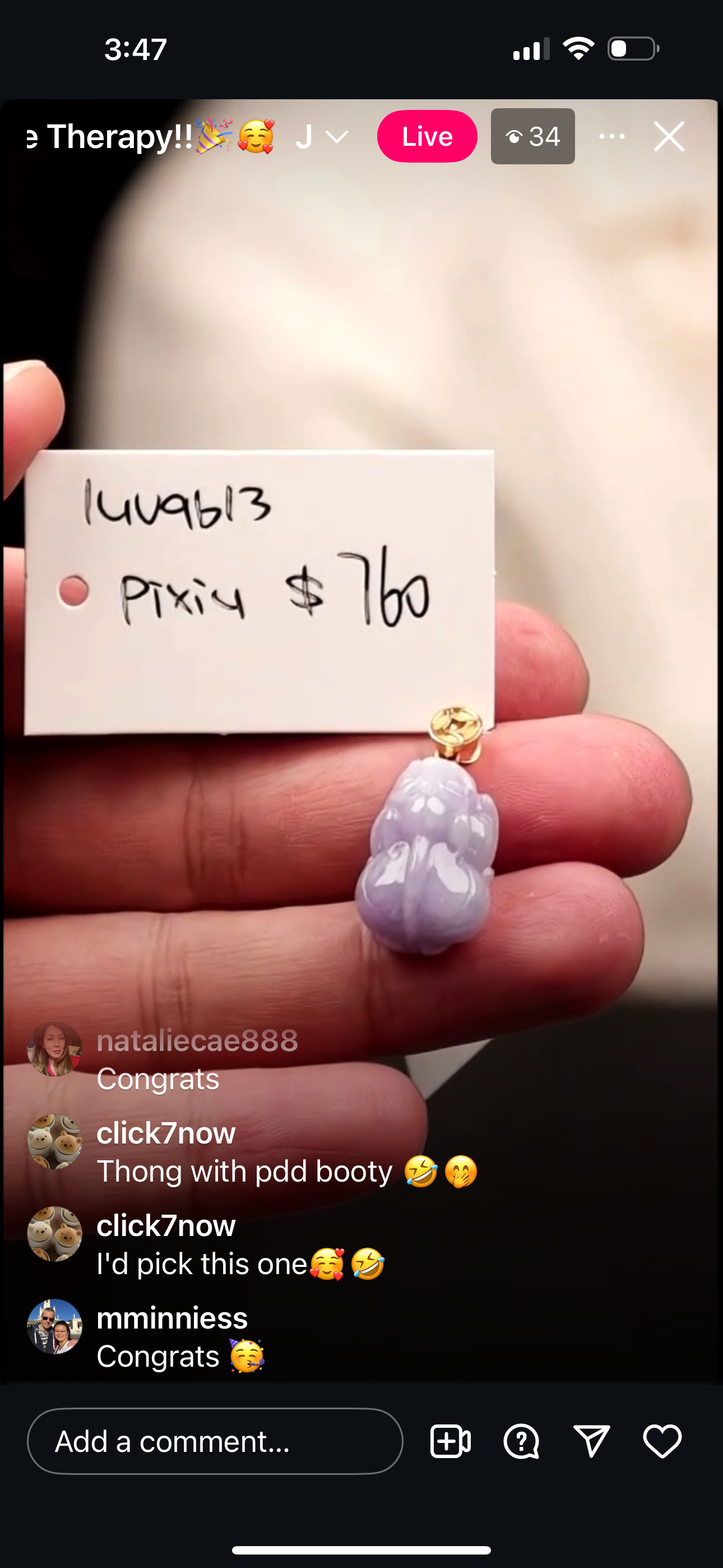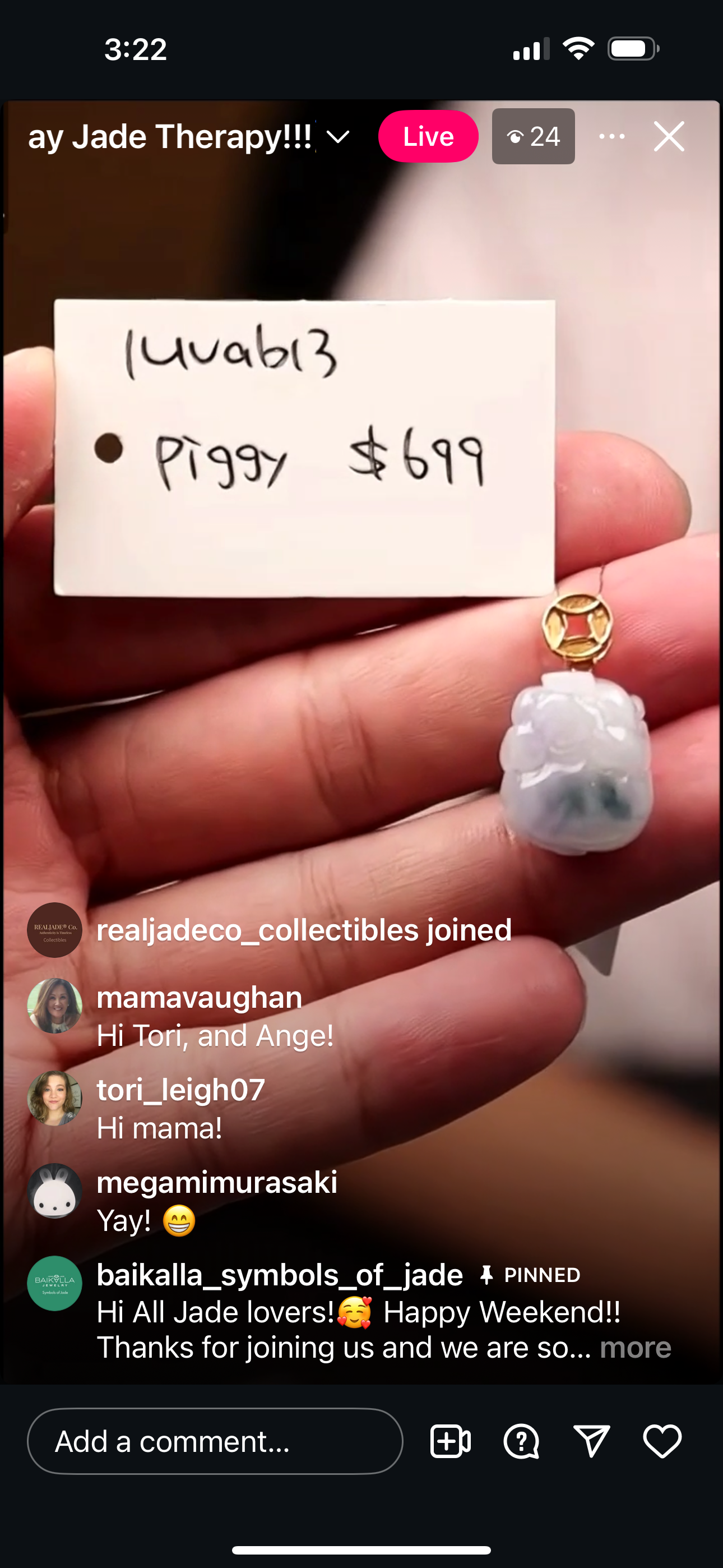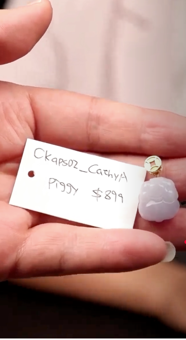 "Live" 18k Natural light LavenderJadeite Jade Piggie Pendant" (07/26/25)