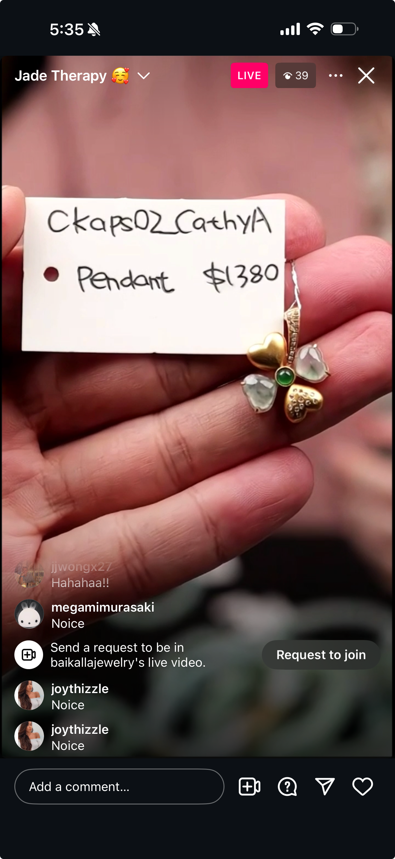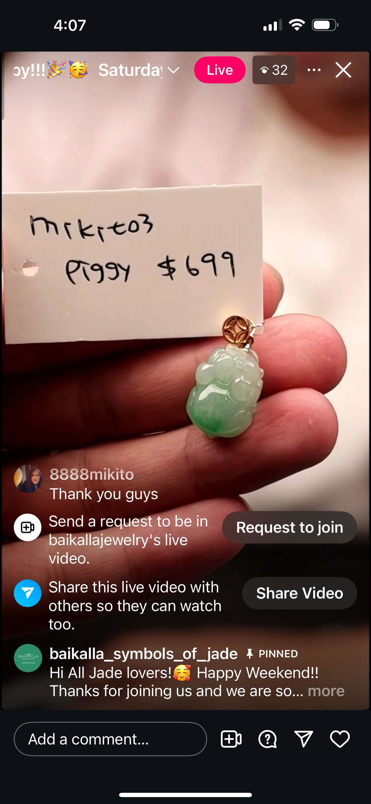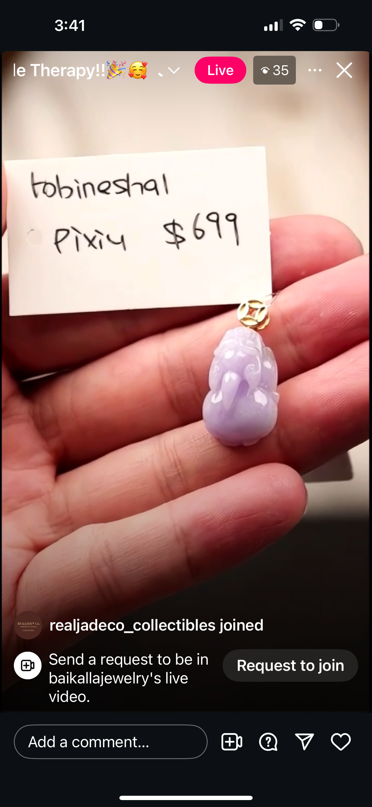 "Live" 18k Natural light LavenderJadeite Jade Piggie Pendant" (07/26/25)