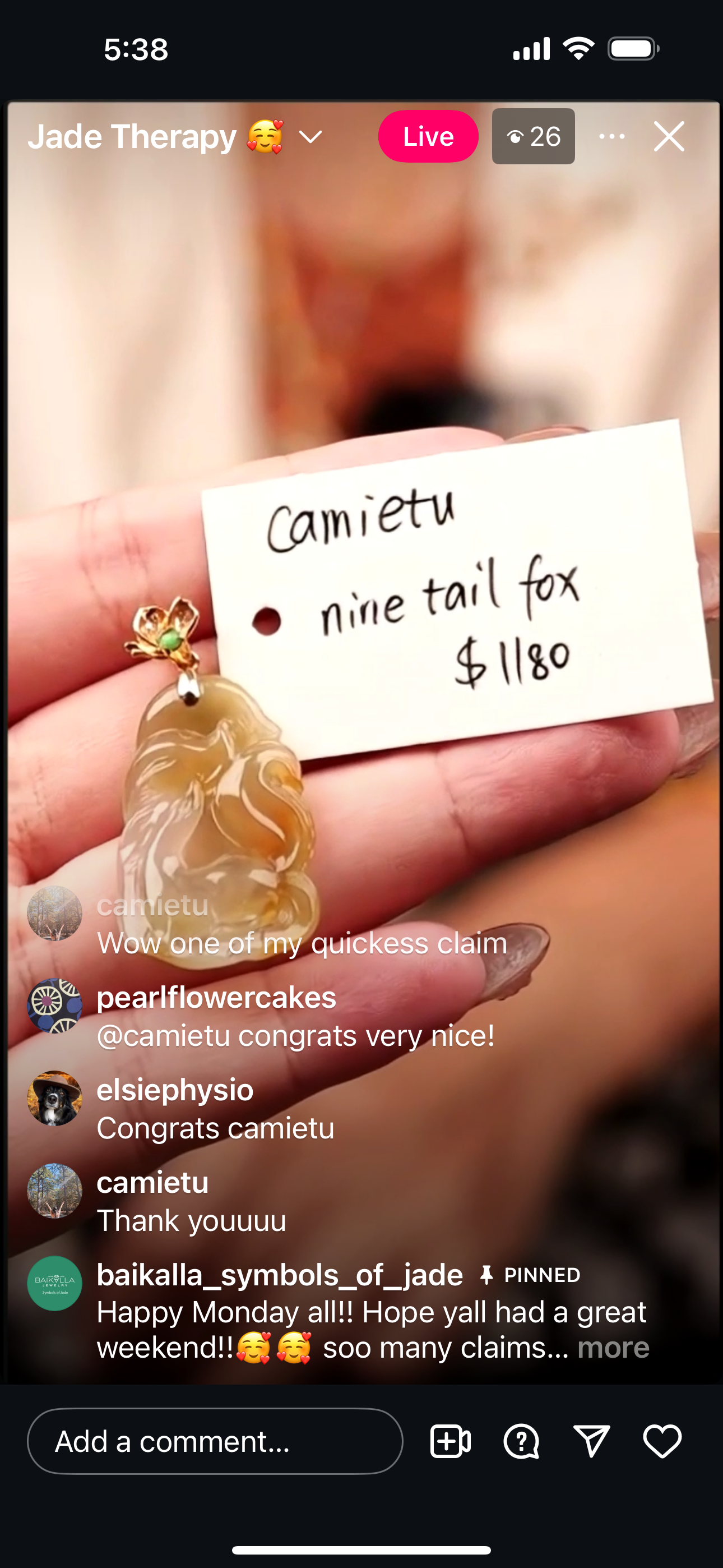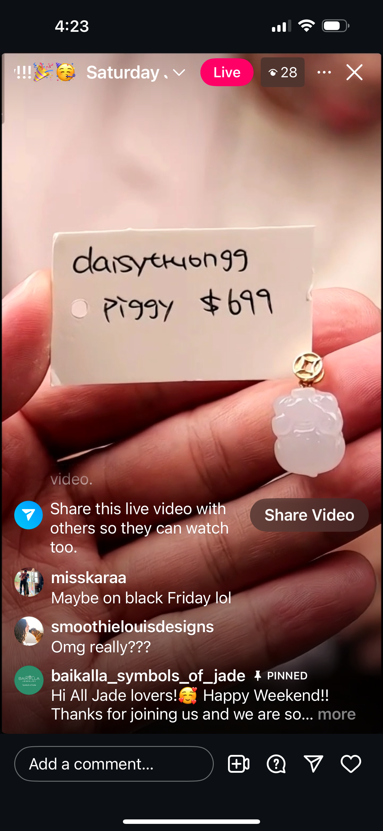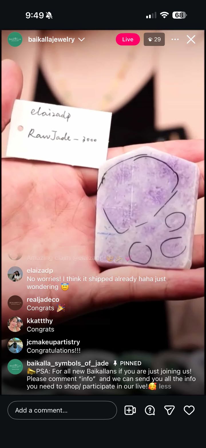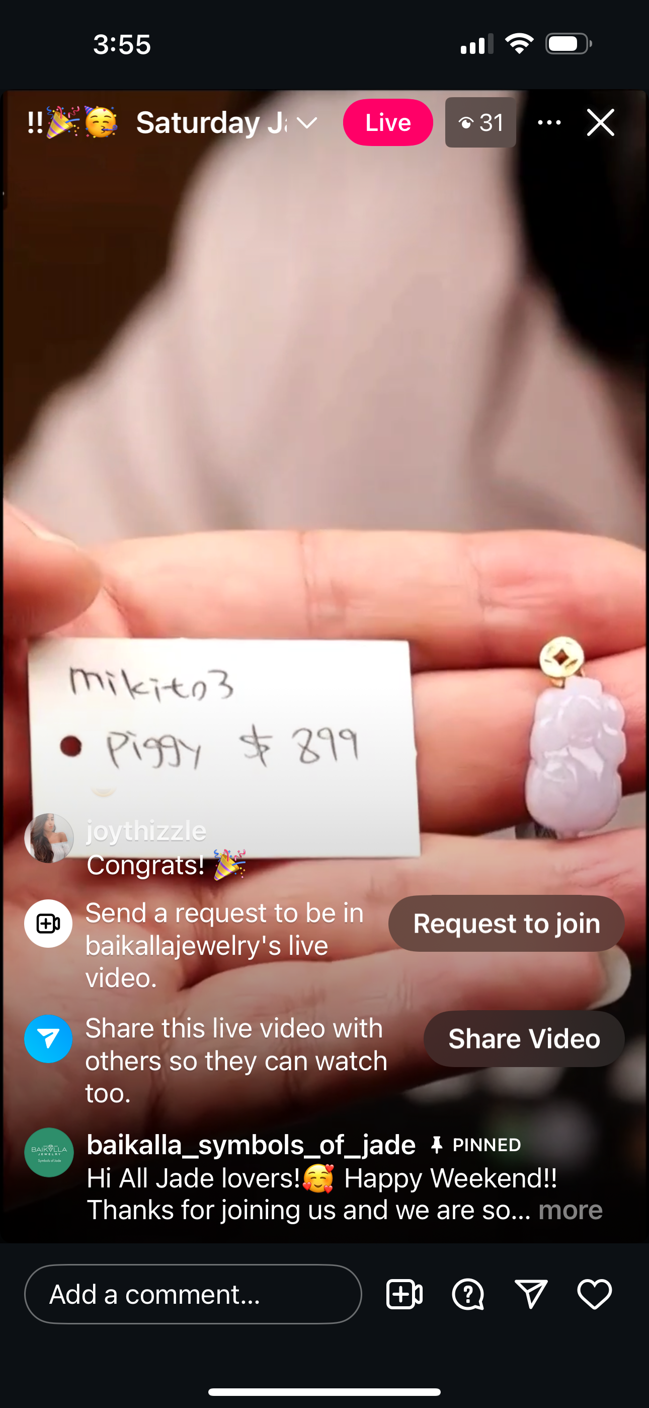 "Live" 18k Natural light LavenderJadeite Jade Piggie Pendant" (07/26/25)