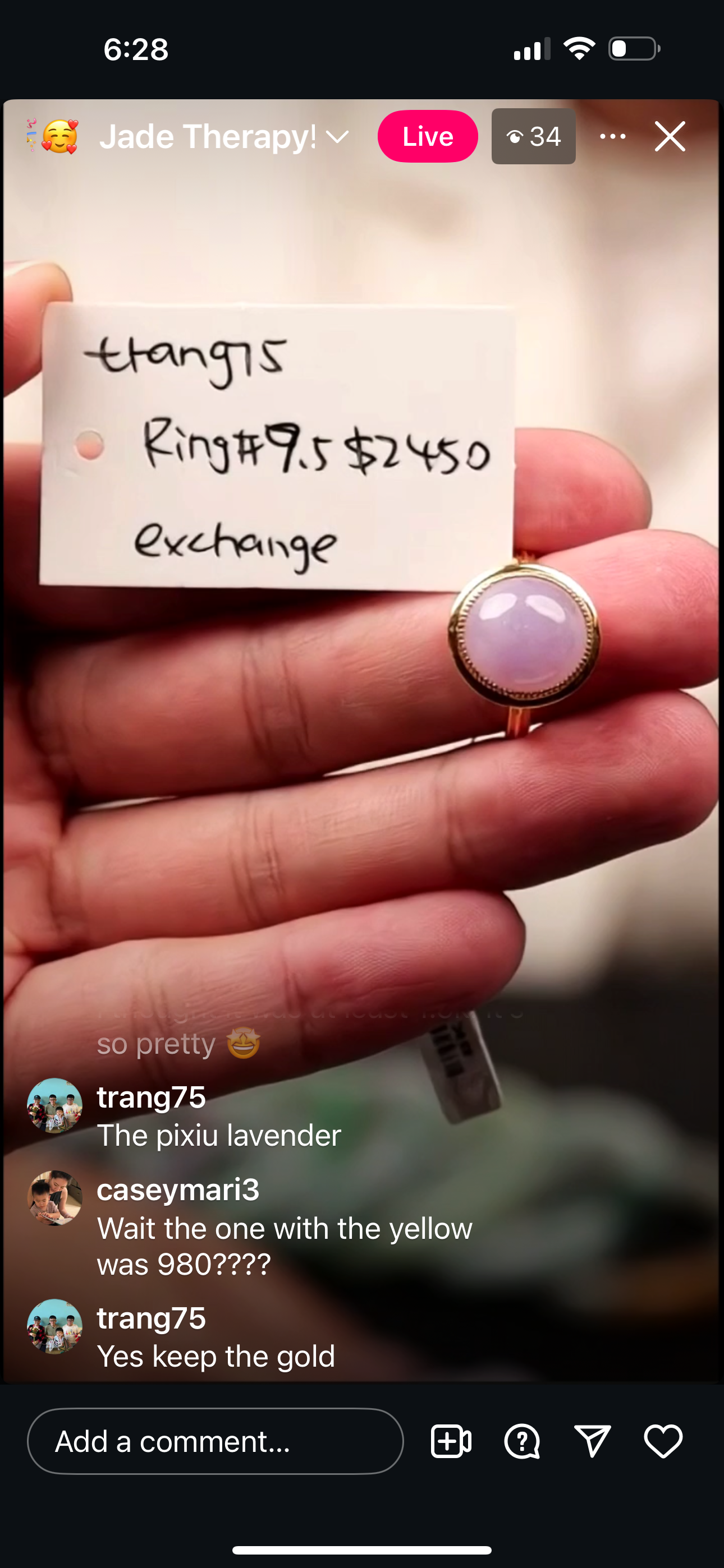 "Live" 18k Natural Lavender Color Jadeite Jade Cabochon Ring" (07/23/25)