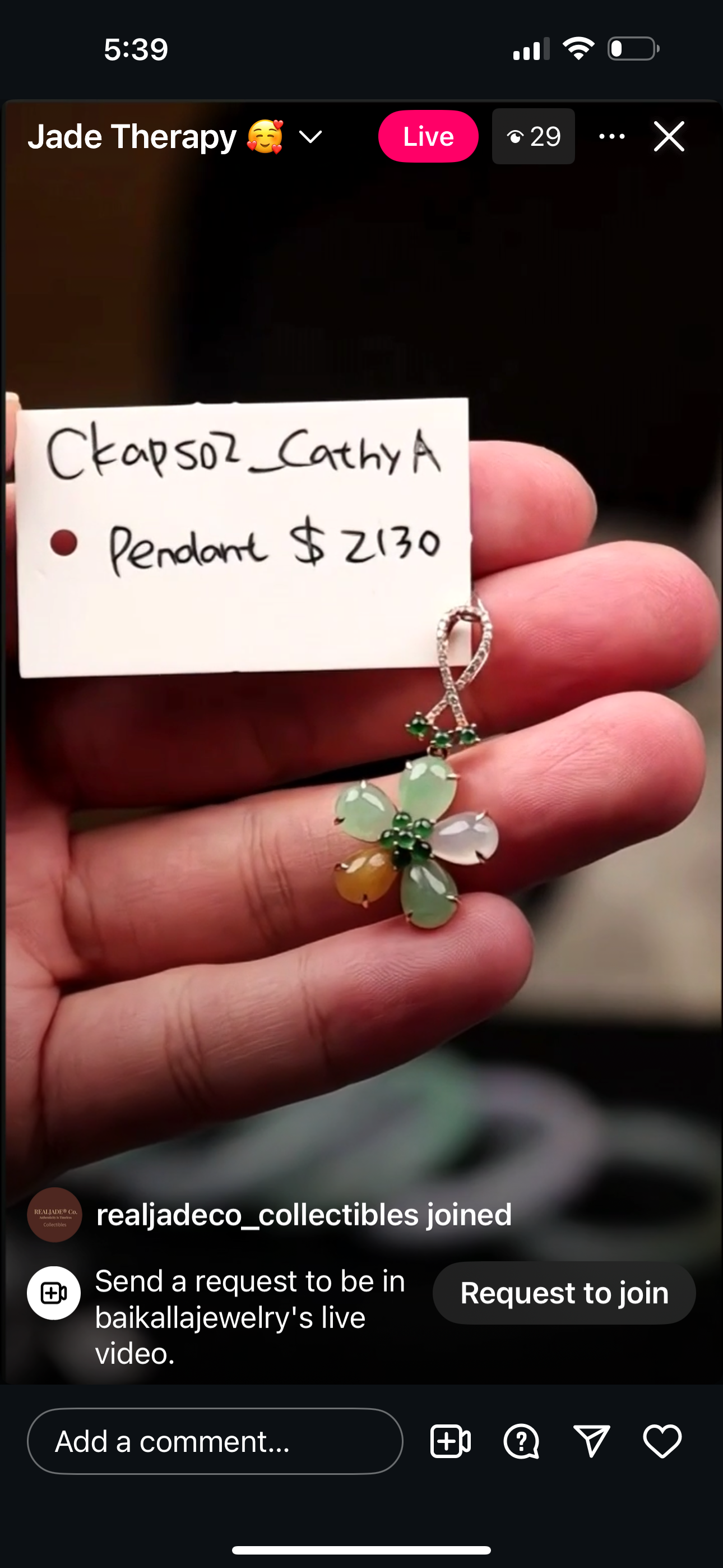 "Live" 18k Gold Natural Icy Jadeite Jade Lotus Flower Pendant" (08/12/25)