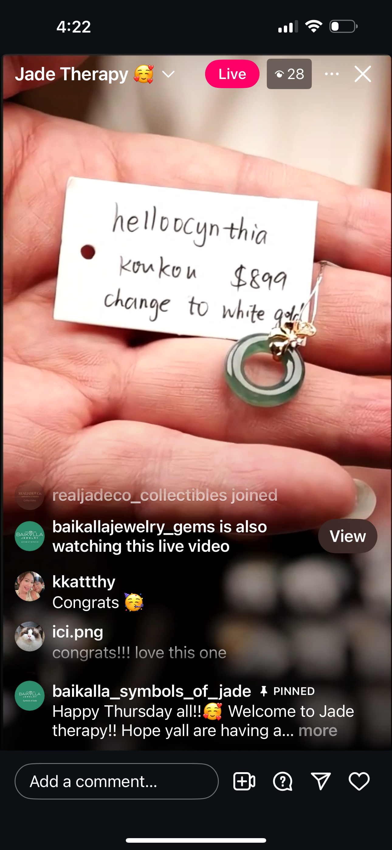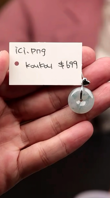 "Live" 18k ( Change to white gold) Natural Icy Oil Green Jadeite Jade Kou Kou Pendant" (08/21/25)