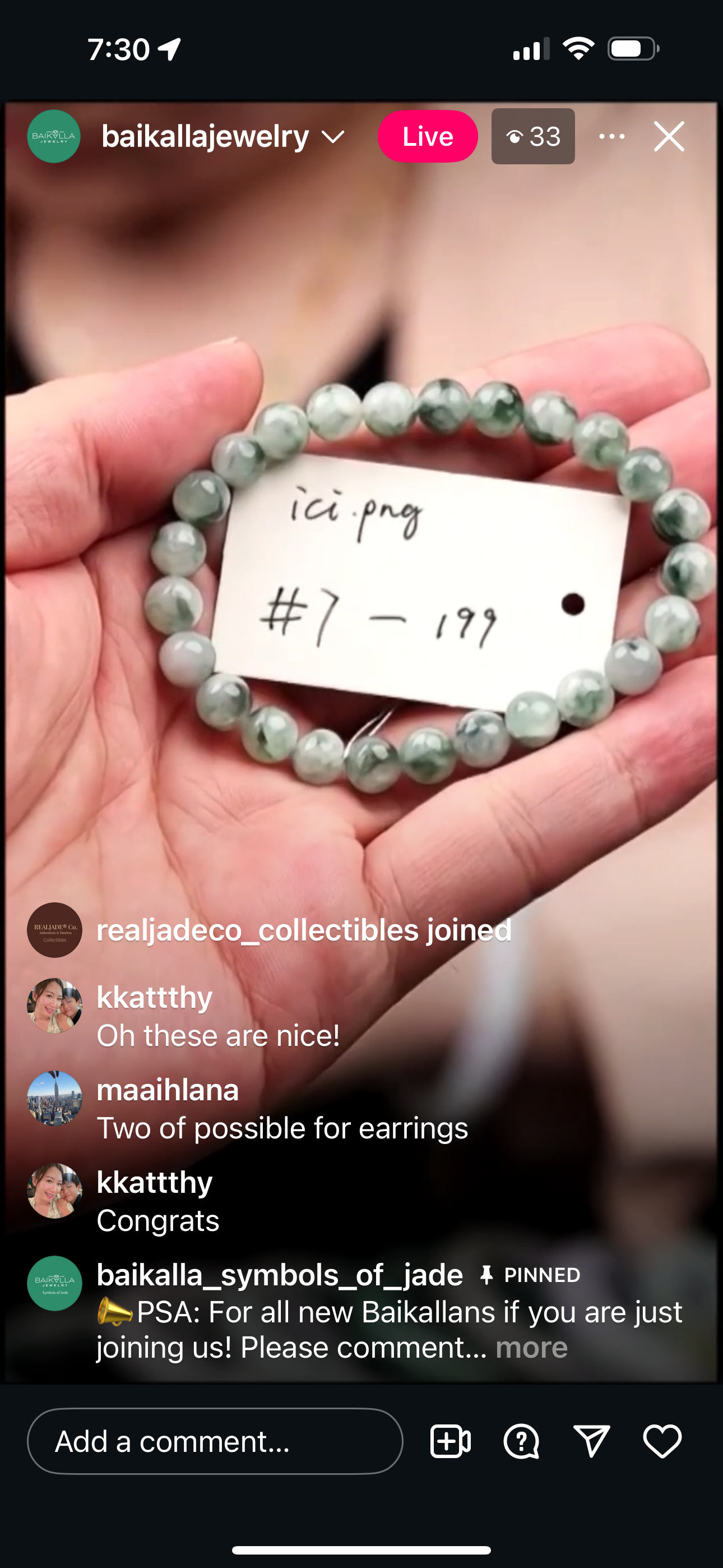 "Live" 18k Natural Icy Oil Green Jadeite Jade Kou Kou Bracelet (09/10/25)