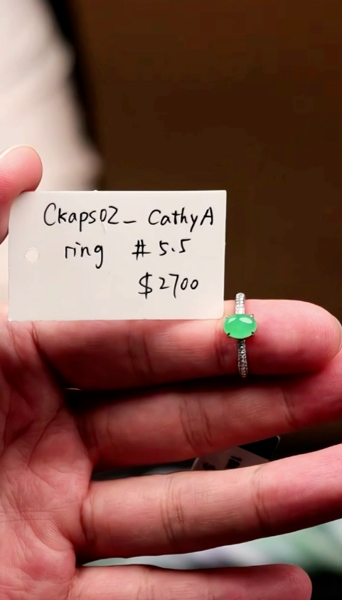 "Live" 18k Natural Icy Rich Green Oval Cabochon With Natural Diamond Ring #5.5(09/30/25)