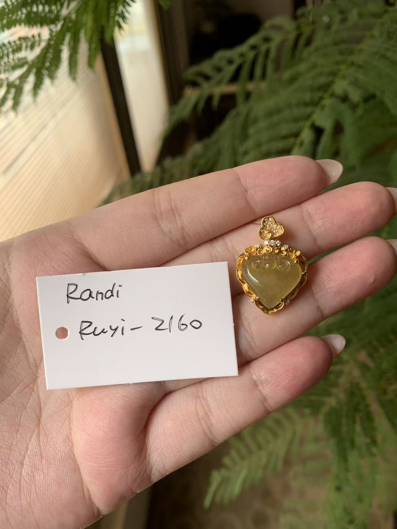 "Live" 18k Gold Icy Yellow Heart Shape RuYi Jadeite Jade Pendant with Natural Diamonds(11/26/25)
