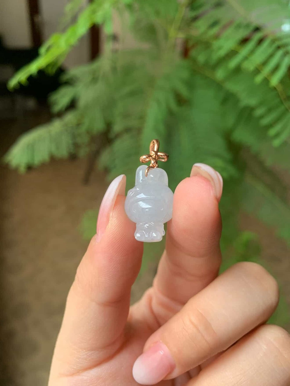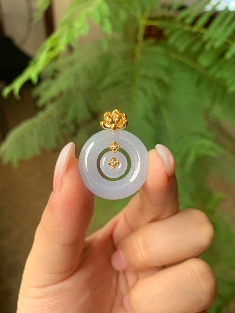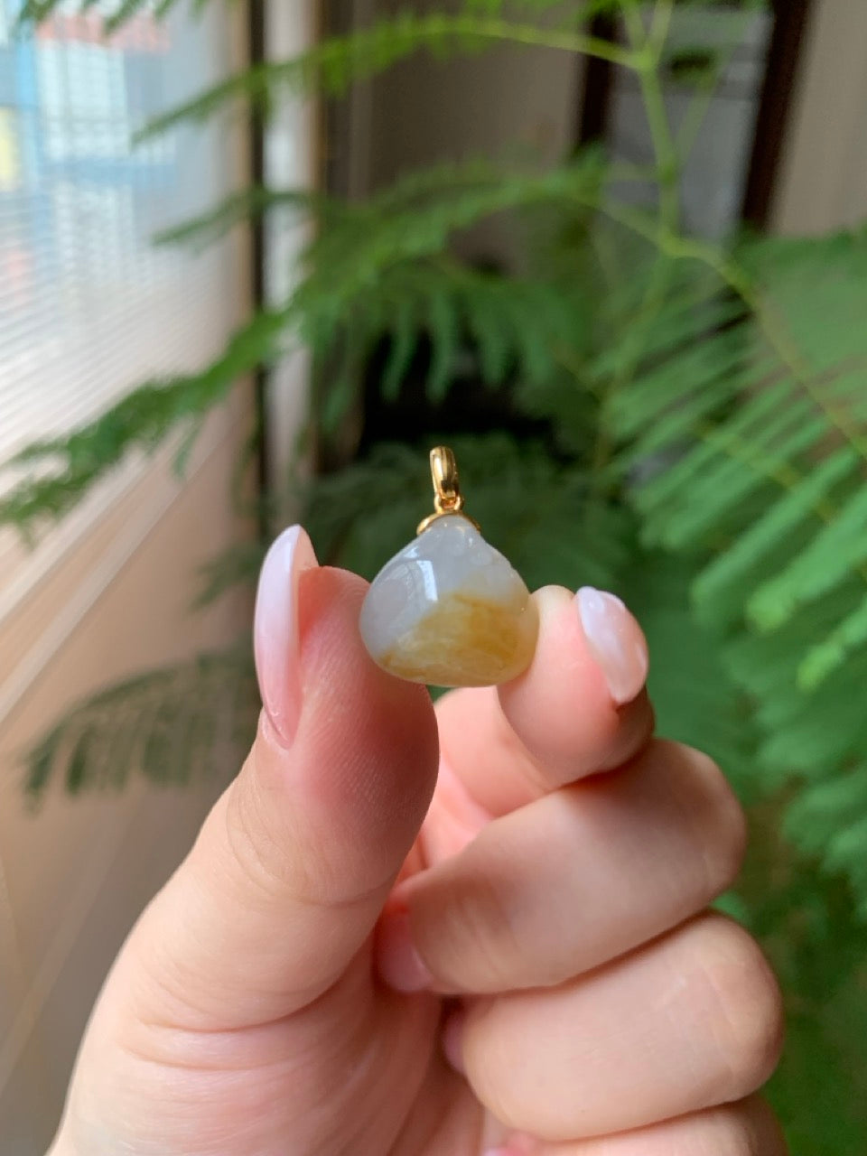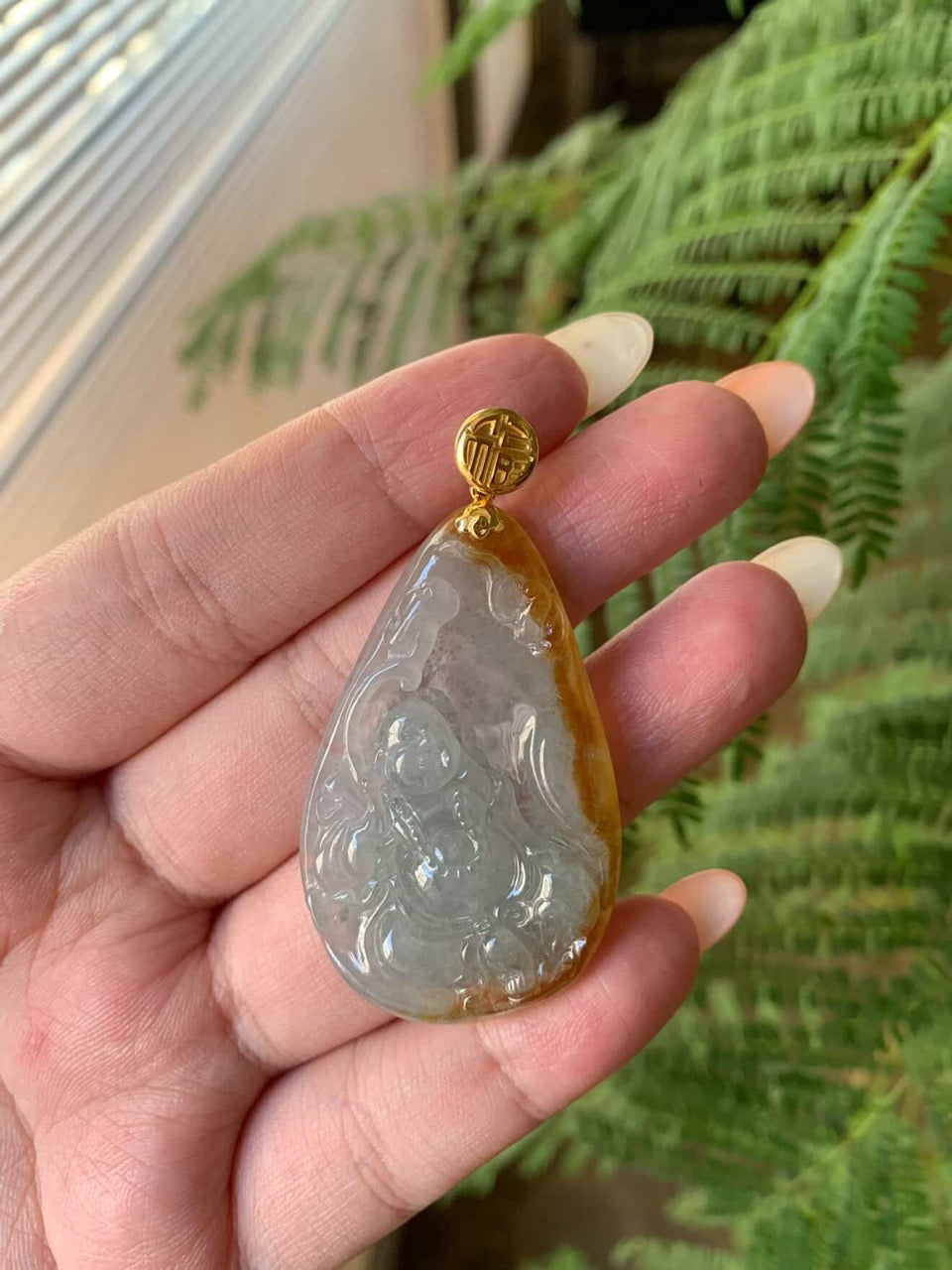"Live" 18kw Gold Natural High Icy Jadeite Jade Kou Kou Pendant" (07/28/25)