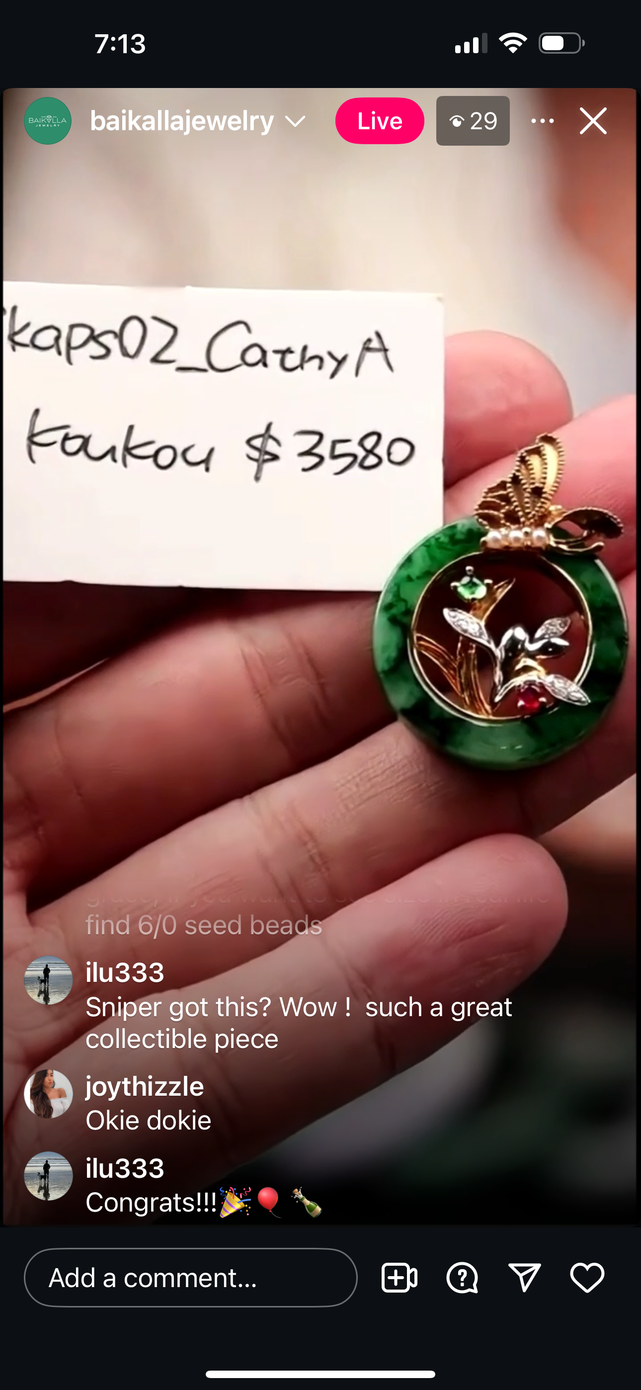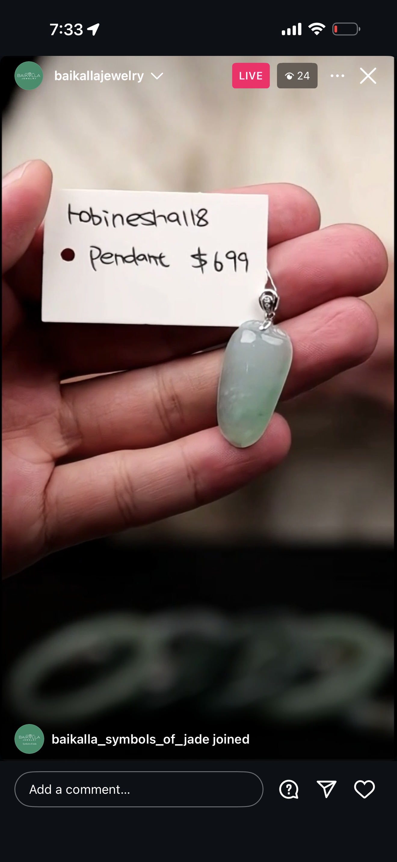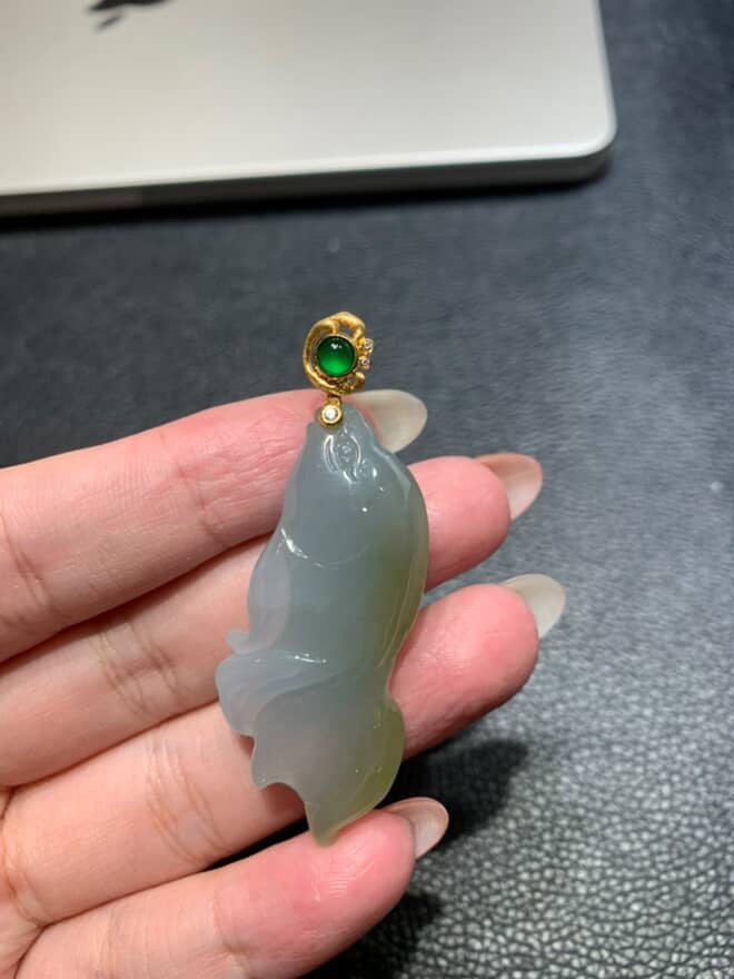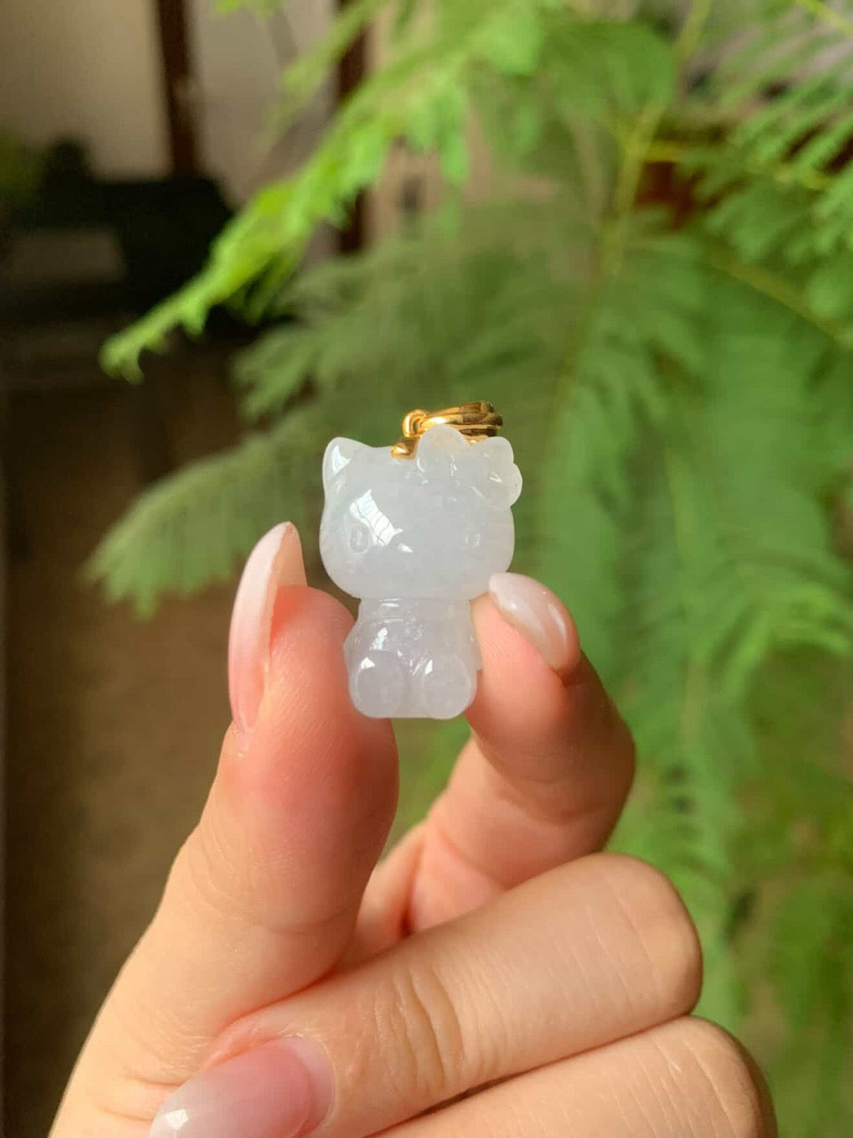"Live" 18kw Gold Natural High Icy Jadeite Jade Kou Kou Pendant" (07/28/25)