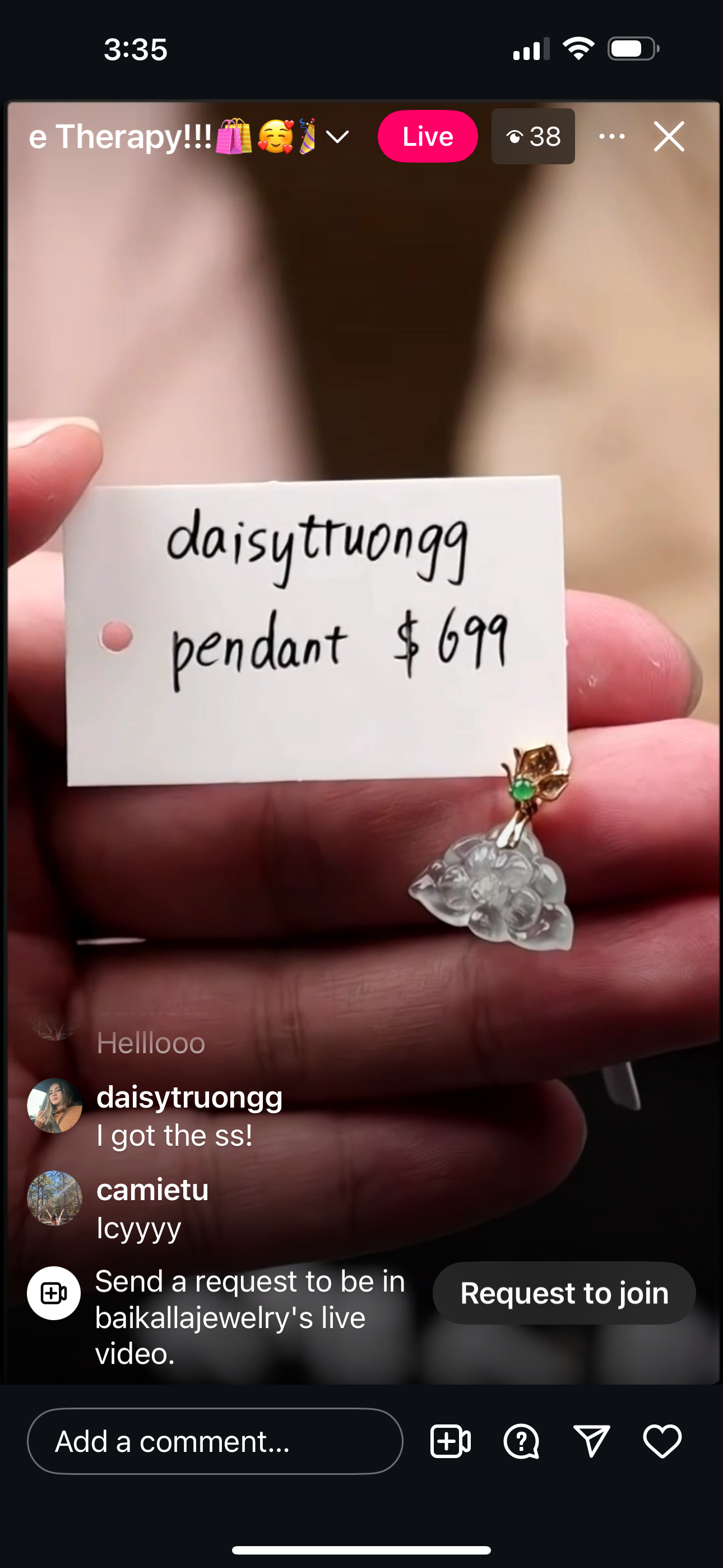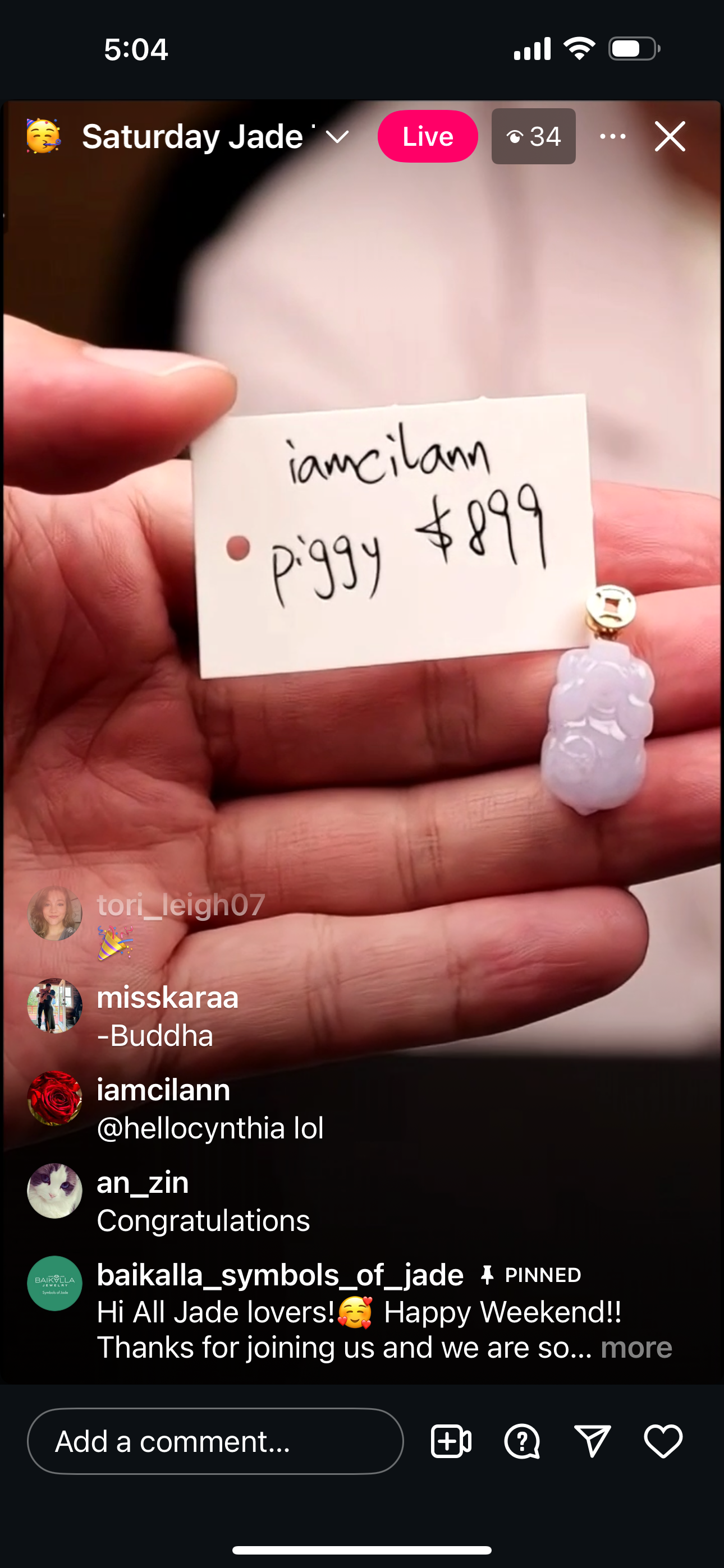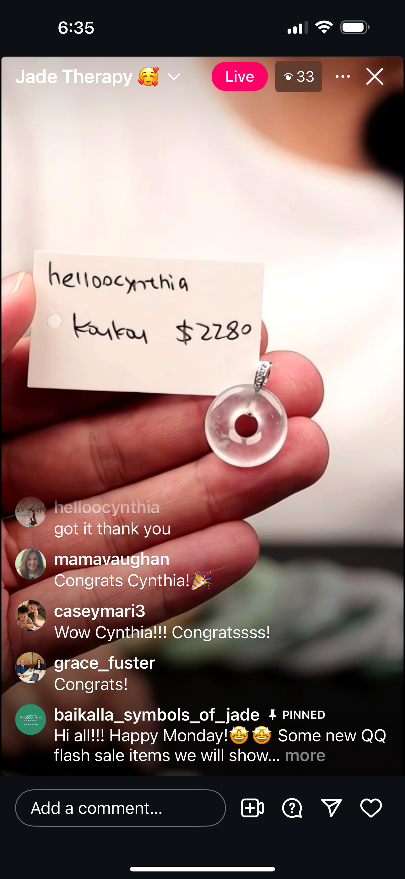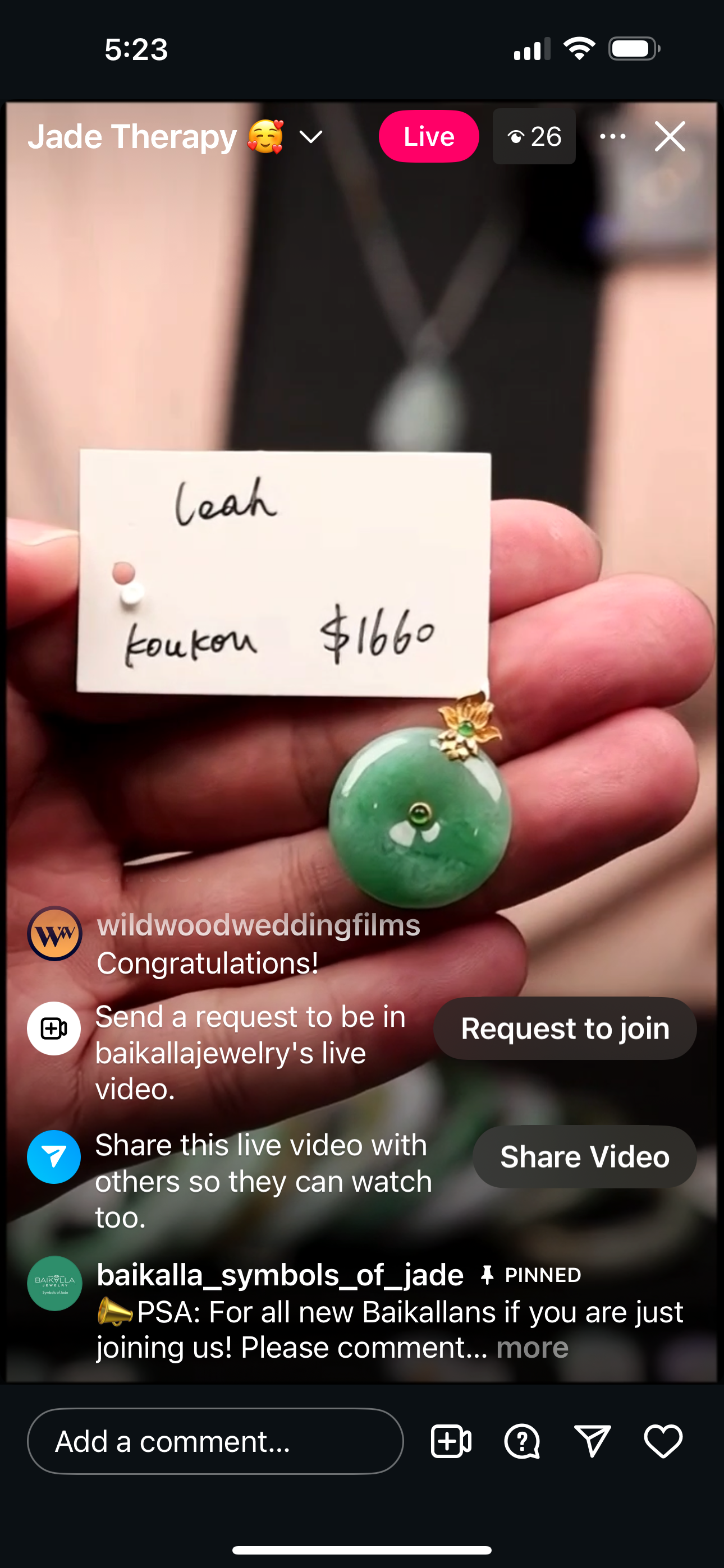 "Live" 18kw Gold Natural High Icy Jadeite Jade Kou Kou Pendant" (07/28/25)