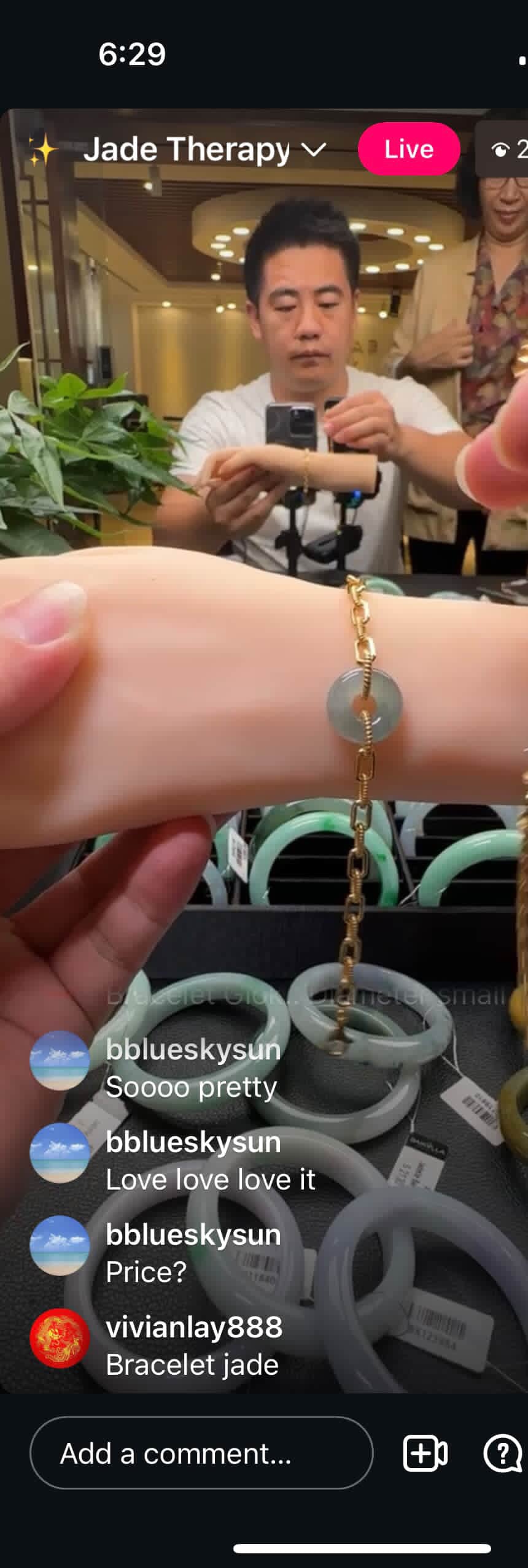 "Live" 18k Yellow Gold Icy Blue Greenish Jadeite Jade Kou Kou Link Bracelet " (08/25/25)