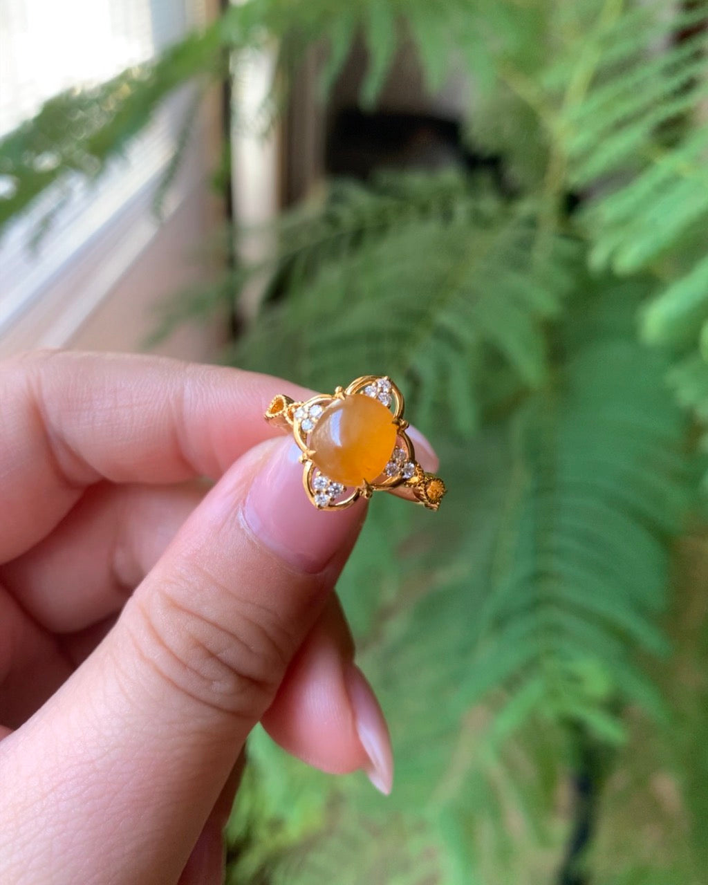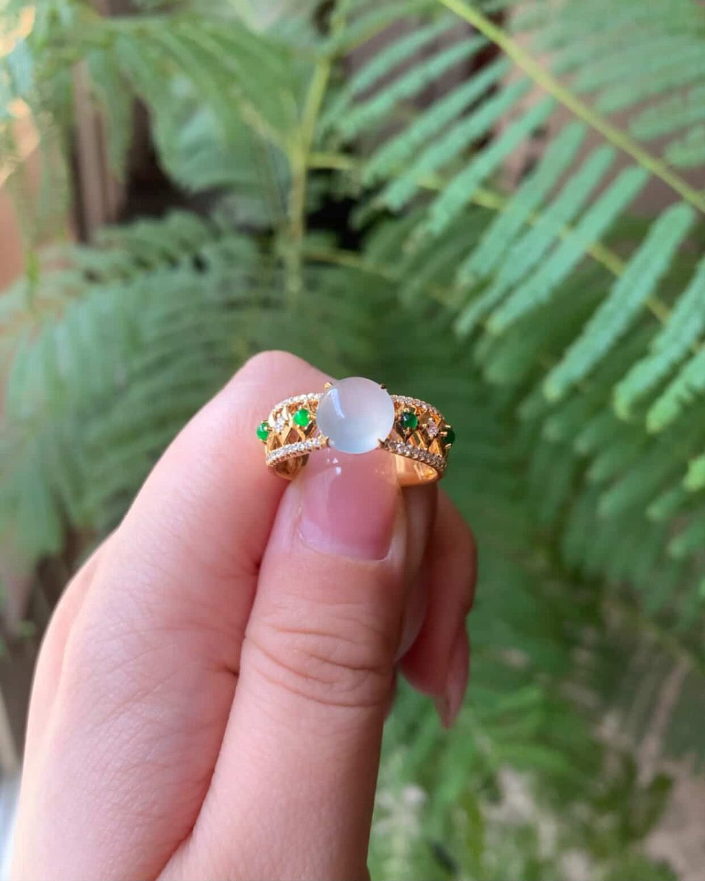 "Live" 18k Yellow Gold Natural Icy Color Jadeite Jade Engagement Ring (09/15/25)