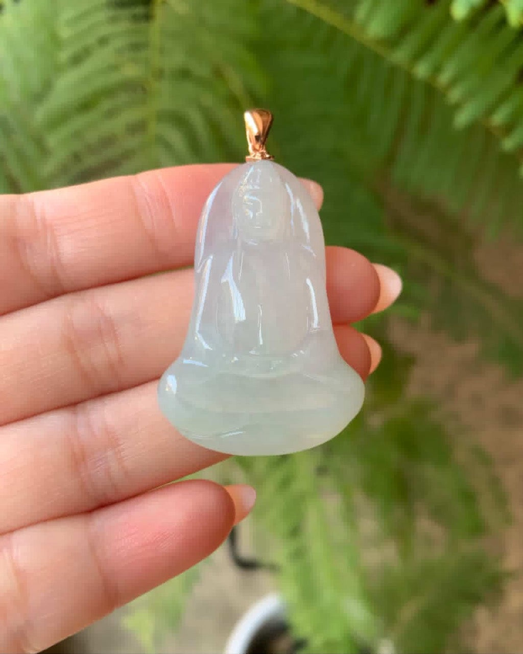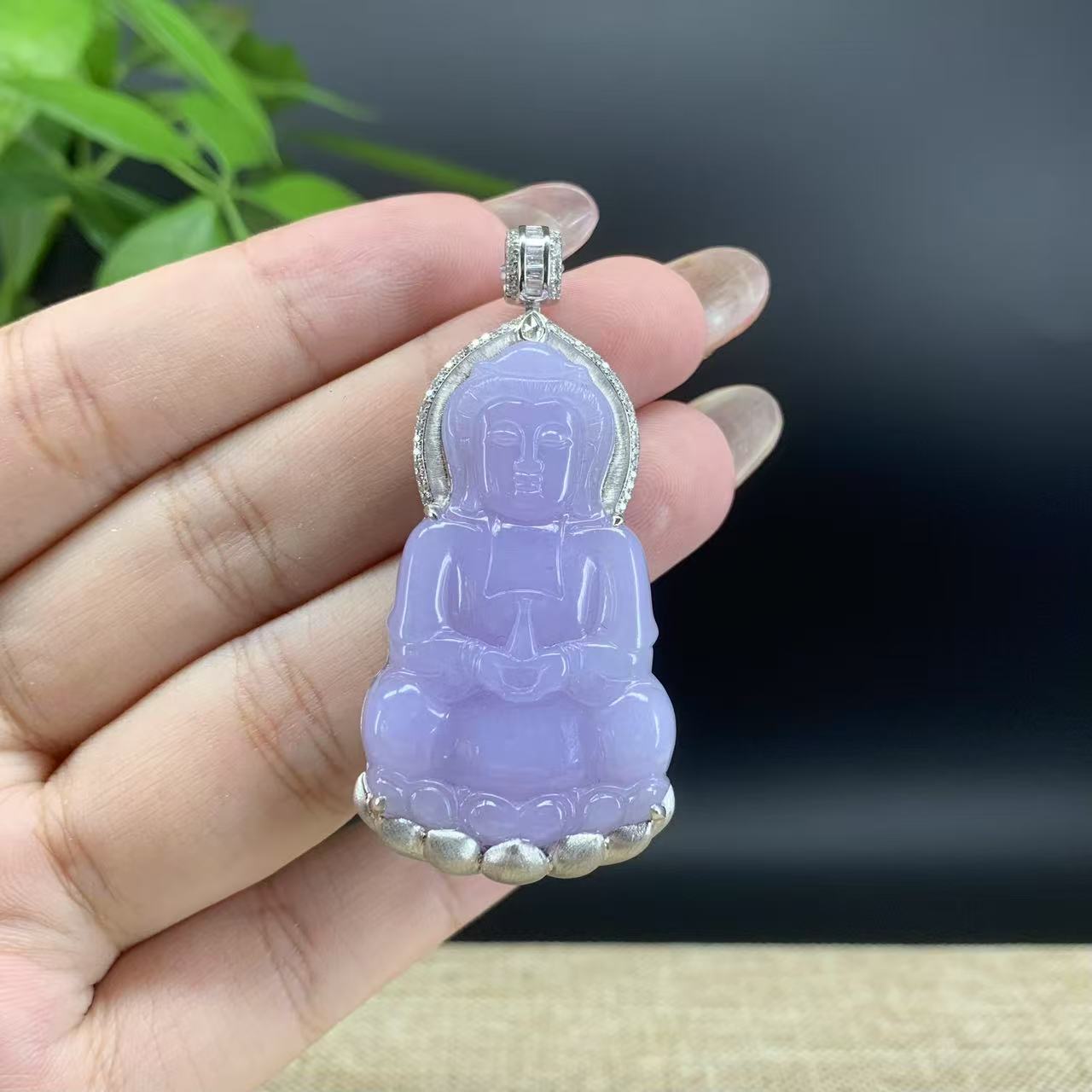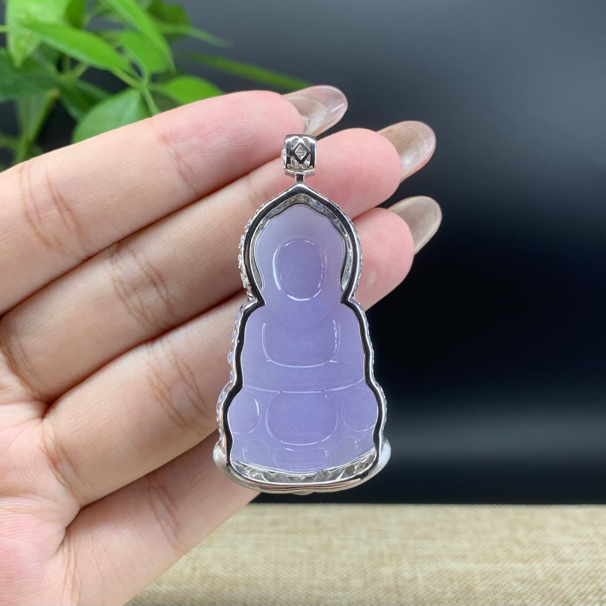 "Live" 18kw Gold Natural Lavender Jadeite Jade Guan Yin Pendant W/ Natural Diamonds" (07/01/25)