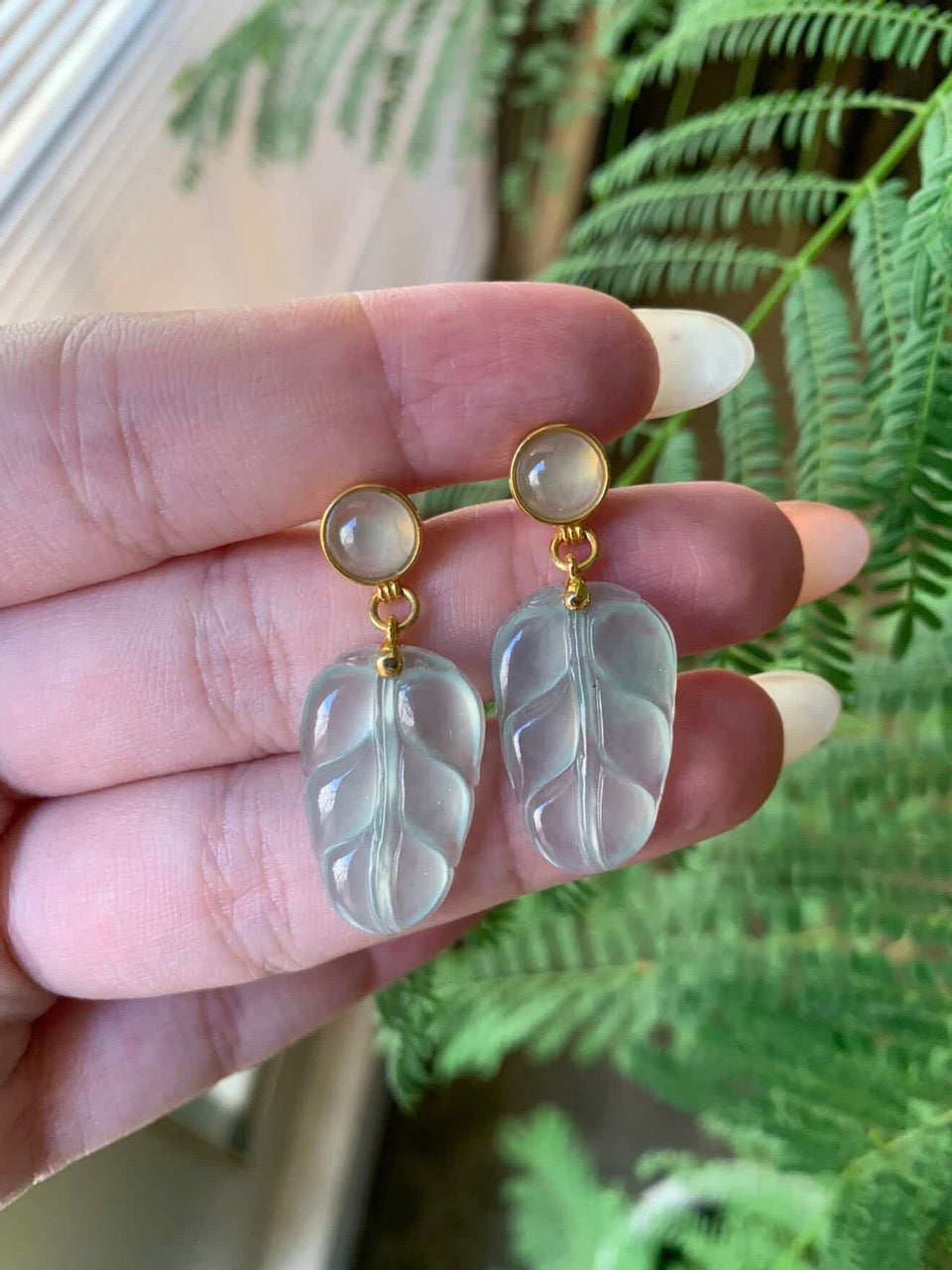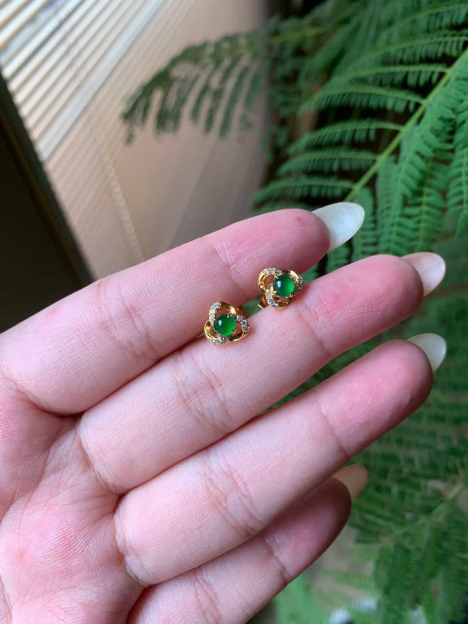 "Live" 18kw Gold Natural Icy Green Jadeite Jade Earrings w/ Natural Diamonds (11/04/2025)