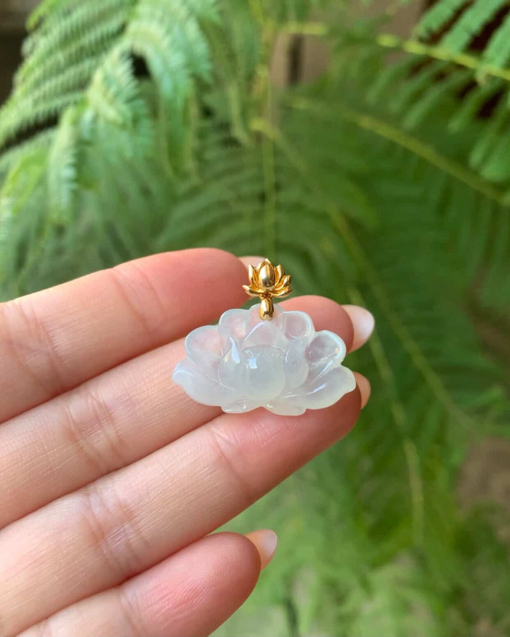 "Live" 18k Yellow Gold Natural High Icy Peony Jadeite Jade Pendant" (08/11/25)
