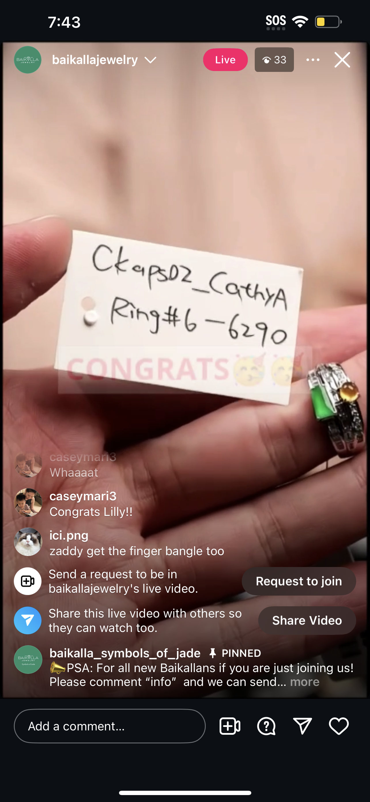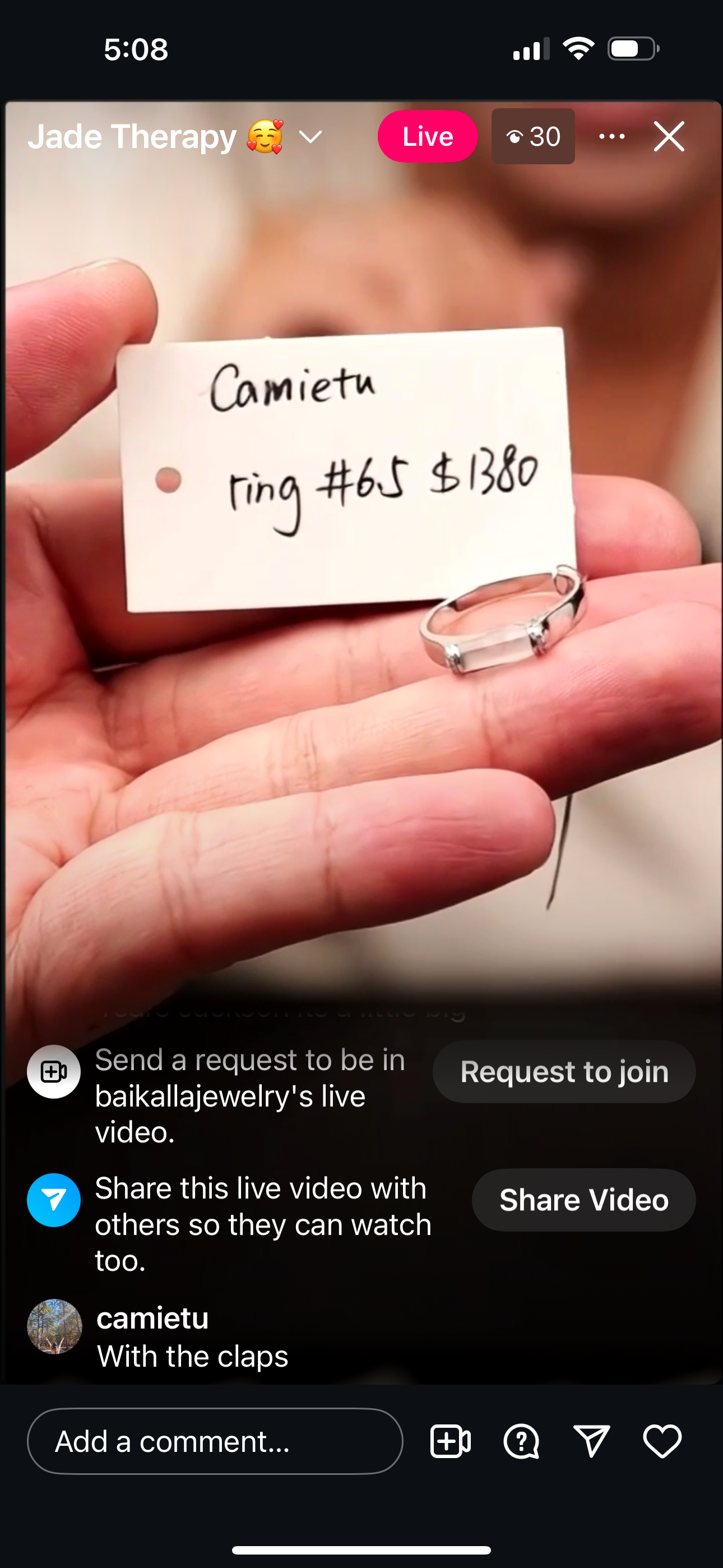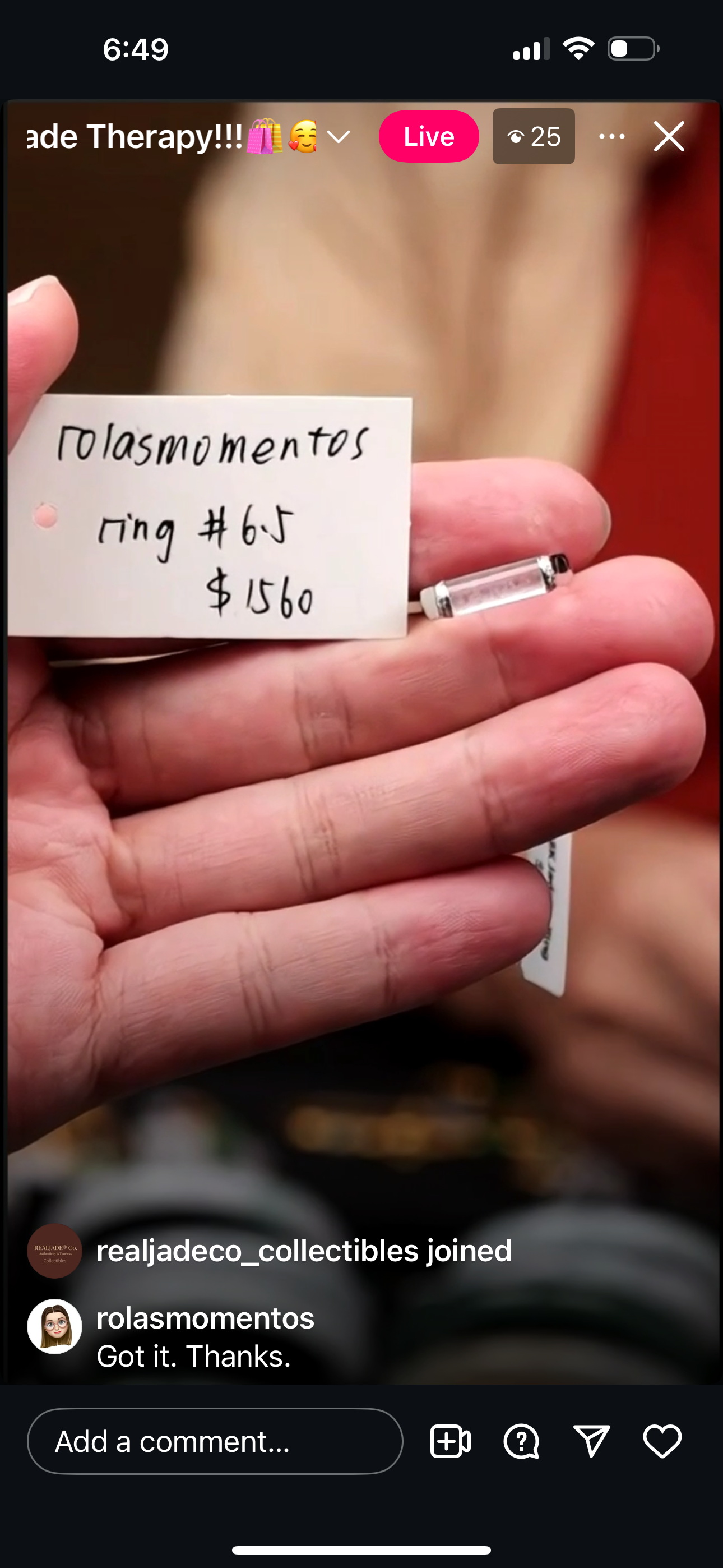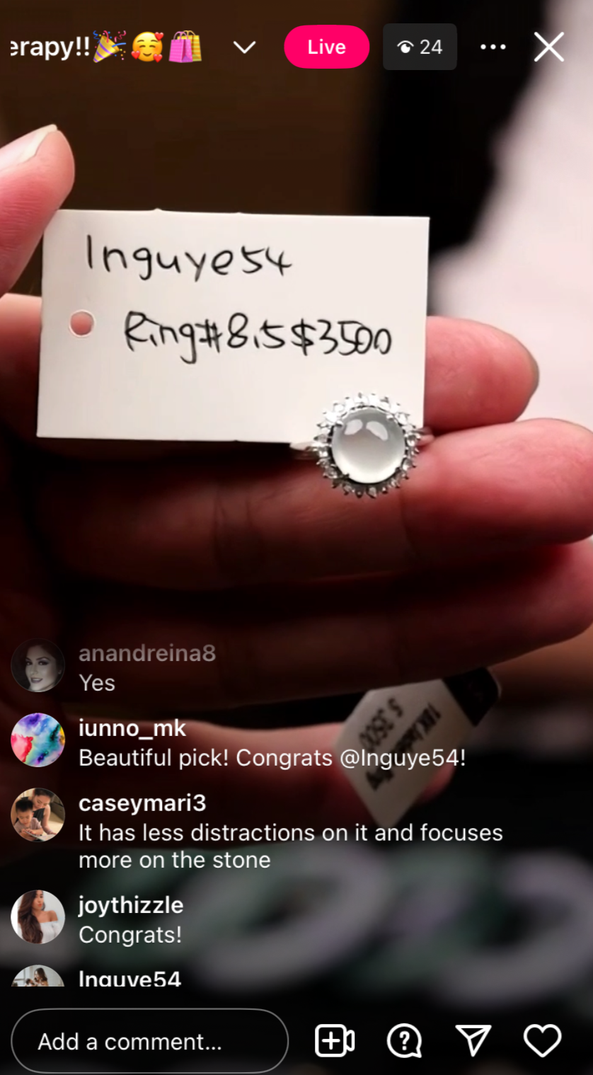 "Live" 18k White Gold Natural Icy Bar Jadeite Jade Ring" (08/11/25)