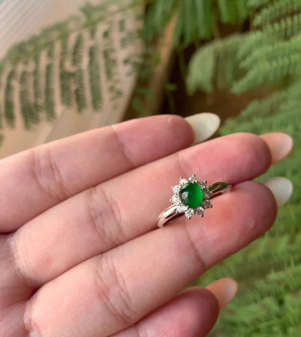 Baikalla 18k White Gold Exceptional Quality Natural Imperial Green Jadeite Jade Engagement Ring With Diamonds