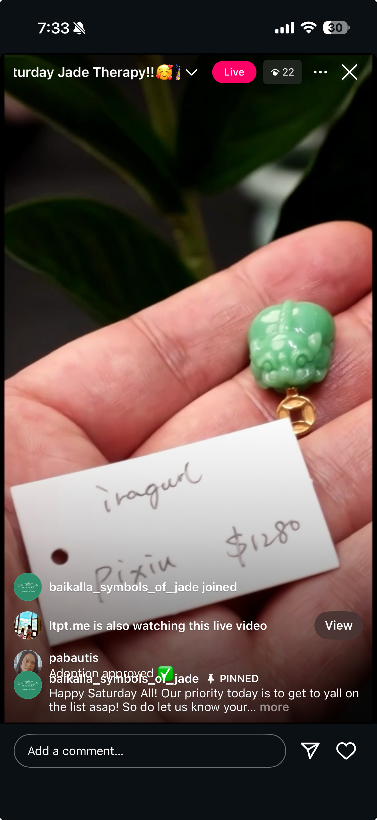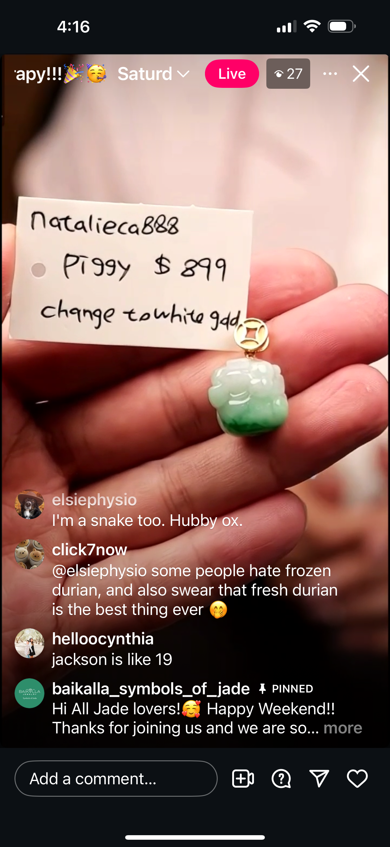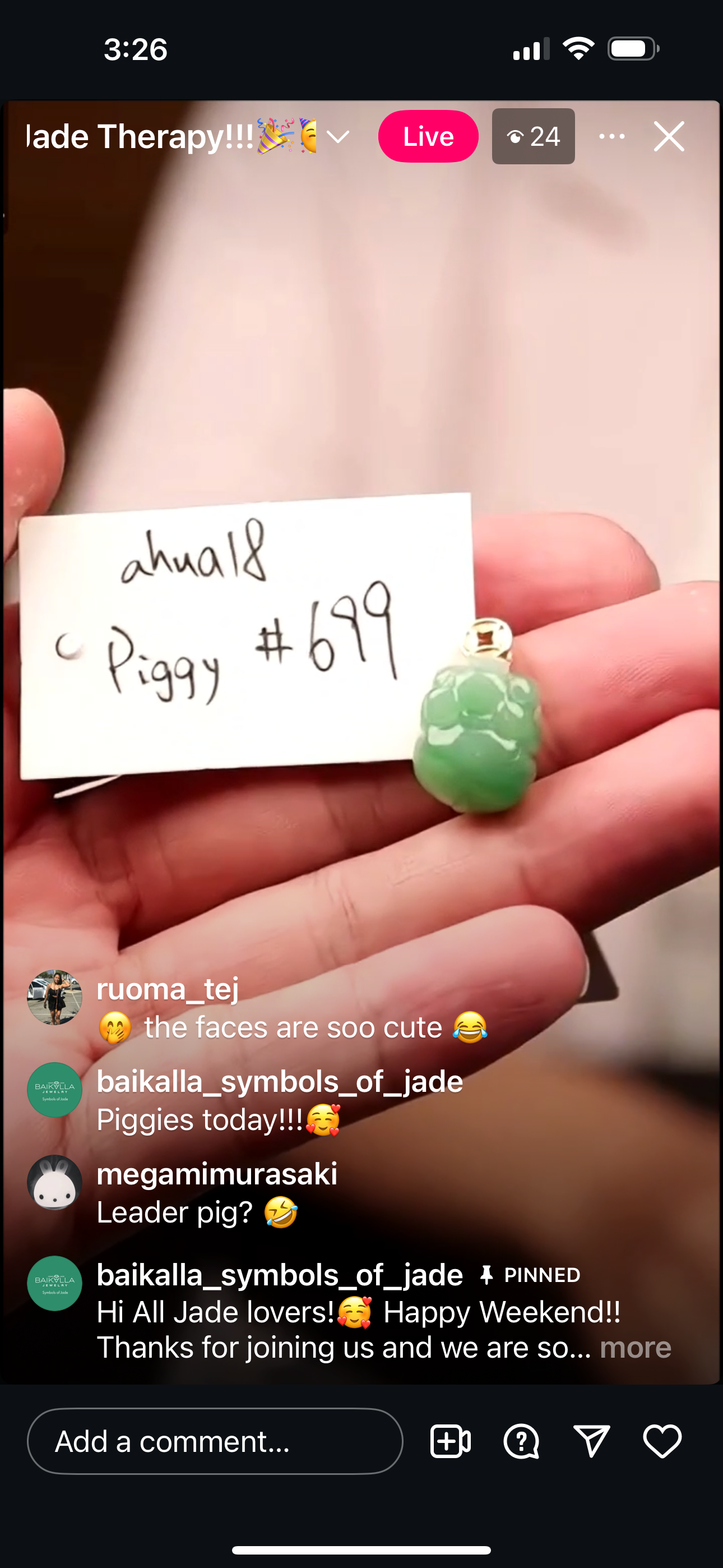 "Live" 18k Natural Rich Green Jadeite Jade Piggie Pendant" (07/26/25)