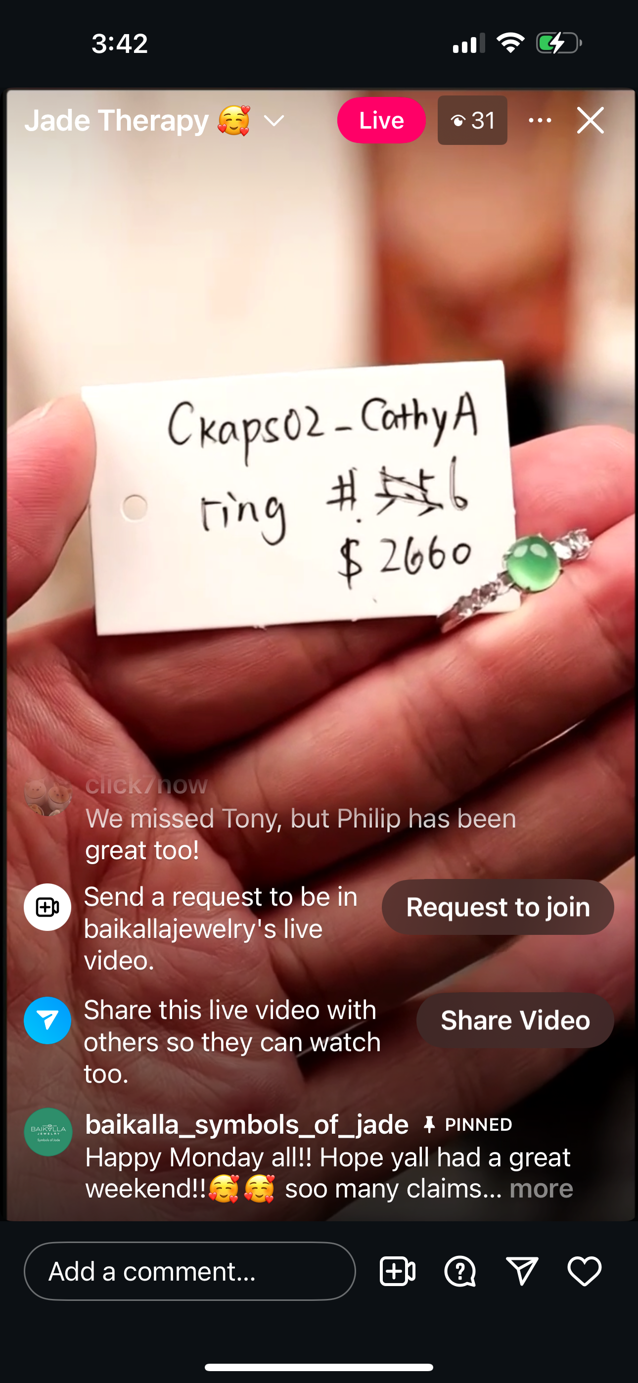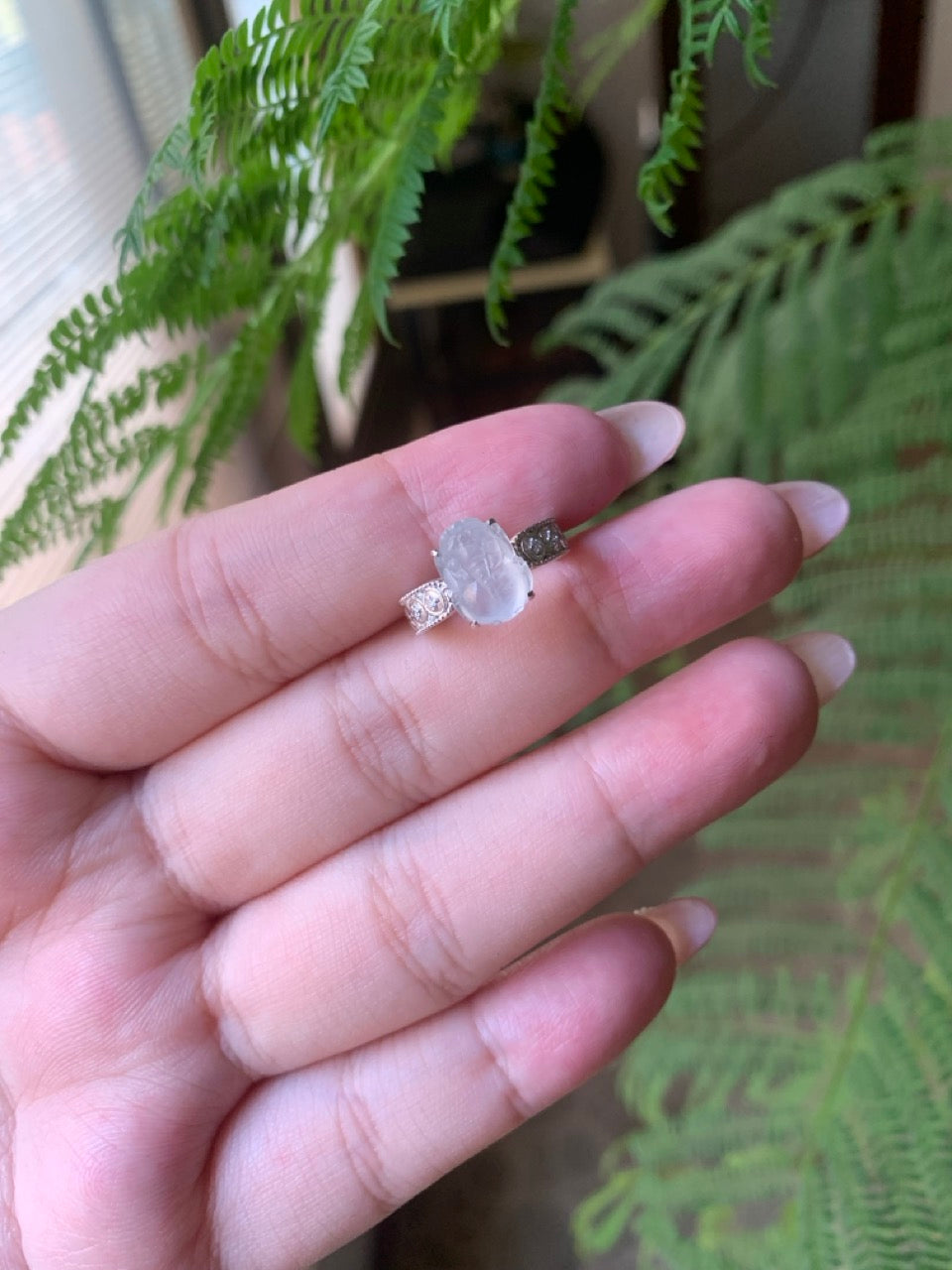 "Live" 18k White Gold Natural Icy Jadeite Jade Ring W/ Natural Diamonds" (08/09/25)