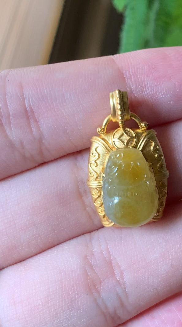 "Live" 18K Yellow Gold Natural Yellow Jadeite Jade Pixiu Pendant " (08/23/25)